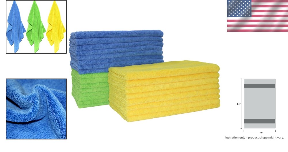 Microfiber Cleaning Towel 16x24 in 18 Pack Absorbent Dust Free Polishing ‹ › ‹ › ‹ › ‹ › ‹ › ‹ › ‹ › ‹ › ‹ › Microfiber Cleaning Towel Set Specifications: Size: 16 inches x 24 inches (40.6 cm x 60.9 cm) Quantity: 18 towels per pack Colors Available: Bright Blue, Green, Yellow Weave Type: Terry Classification: Standard (250 - 299 gsm) Product Features: Super Absorbent: Holds 8x its weight in liquids, drying 2x faster than traditional fibers. Dust-Free Polishing: Highly effective microfiber captures dust, dirt, and debris for a pristine finish. Versatile Use: Safe for all hard surfaces, paints, and clear coats; use wet or dry, with or without cleaners. Lint and Streak Free: Delivers a clean, dry, and polished finish, leaving no residue behind. Easy Maintenance: Machine washable; simply wash in warm water and air dry or tumble dry on low setting. Elevate Your Cleaning Experience Introducing our Microfiber Cleaning Towel Set, expertly crafted to meet your diverse cleaning needs. These towels are not just ordinary cleaning aids; they are tailored to transform your cleaning tasks from mundane to effortless. Infused with superior absorbent properties, these towels capture dust and dirt with unparalleled efficiency. Whether you're cleaning your vehicle, polishing delicate glass surfaces, or tackling tough grime in your kitchen, these towels are your perfect companion. With the capability to be used on virtually all hard surfaces without leaving scratches, your spaces will shine like never before. Why Choose Our Microfiber Cleaning Towels? Designed with your satisfaction in mind, our towels can be used 100's of times, providing an economical and eco-friendly cleaning solution. Experience the difference of microfiber technology—each towel is capable of transforming the way you clean. When you're ready to maximize cleanliness in your home, office, or vehicle, these microfiber towels stand above the rest. Invest in quality cleaning tools that work as hard as you do. Add our Microfiber Cleaning Towel Set to your cleaning arsenal today and enjoy a lint-free and streak-free shine in every corner of your surroundings! Shipping Free & Fast Shipping - We offer free shipping to most of the USA with a normal delivery time of 3-7 days. However, due to the current situation, additional delivery time (up to 3 weeks) may be required for some items. Alternative Carriers - We may use alternative carriers (e.g. USPS, FedEx, UPS, etc.) to ensure your package arrives safely and on time. Due to the use of multiple carriers, we are unable to provide a tracking number automatically. Handling Time - Orders are processed and shipped within 1-2 business days of receiving cleared payment. Shipping Restrictions - Shipping to Alaska, Hawaii, Puerto Rico, Guam, and other US territories may incur shipping charges or delivery restrictions. Please contact us before ordering, or your order can be refunded/cancelled. State Restrictions - There may be restrictions based on your state of purchase. For example, certain items may not be shipped to California due to state regulations. Contact for Tracking Updates - If you require tracking updates or have any concerns about the delivery of your order, please feel free to contact us, and we will be happy to assist you. Return 30-Day Hassle-Free Returns - We want you to be completely satisfied with your purchase. If you are not, you can return the item within 30 days of receiving it for a full refund or exchange. Easy Return Process - To start a return, simply contact us and we will provide you with a prepaid return shipping label and detailed instructions. Restocking Fee - There are no restocking fees for returns. However, the buyer is responsible for return shipping costs if the return is not due to a seller's error. Refund Processing Time - Refunds will be processed within 5 business days of receiving the returned item in its condition. Payment We accept all major credit cards, PayPal, and Apple Pay for your convenience. Your payment information is secure and encrypted to ensure a safe and seamless transaction. Please complete your payment within 3 days of purchase to avoid any delays in shipping. Feedback Your feedback is extremely important to us. We strive to provide the best products and customer service possible. If you are satisfied with your purchase, please take a moment to leave us a positive review. If you have any concerns or issues with your order, please contact us before leaving negative feedback. We are committed to resolving any problems and ensuring your satisfaction. Contact Us If you have any questions or concerns, please feel free to out to our customer support team. You can contact us through the eBay messaging system. We are available Monday to Friday, 9:00 am to 5:00 pm EST, and we will do our best to respond to your inquiry within 24 hours. Buy it now and enjoy a pleasant shopping experience! Item Height: 0.01 Centimeters Unit Quantity: 18 Material: Microfiber,Polyester,Nylon Features: Heavy Duty Cleaning,Lint Free,Reusable,Streak Free,Super Absorbent,Machine Washable,Safe on Hard Surfaces,Fast Drying,Color Coded Cleaning,Multi-Use,Non-Scratch Theme: No Theme Type: Towel Color: Blue For: Automotive Size: Large Capacity: 18 Count Number in Pack: 18 Item Weight: 349 grams