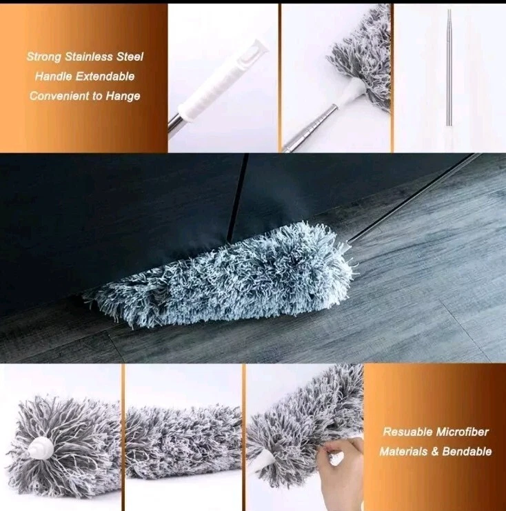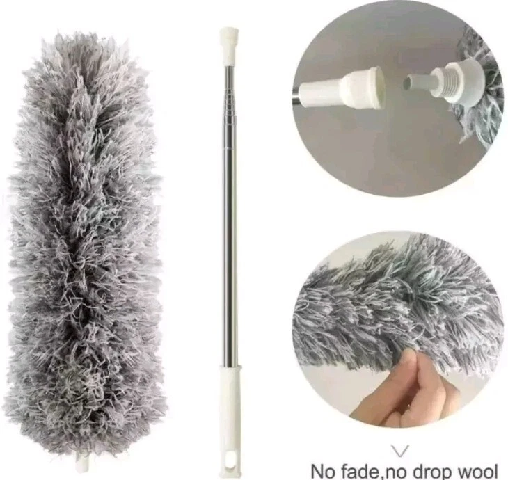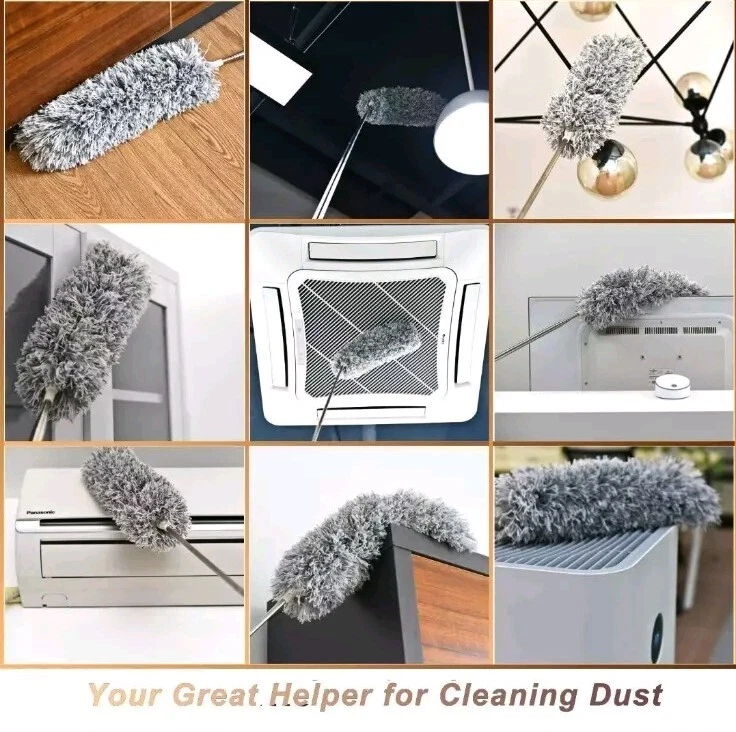 Clean more thoroughly and make work easier with this Microfiber Feather Duster Cleaning Extra Long Extendable Ceiling Fan Brush Pole. The duster can be extended from 30" to 100" and features a telescopic handle and adjustable height to suit your cleaning needs. Its electrostatically charged design attracts dust, pollen, and hairs, making it perfect for surfaces like high roofs, ceiling fans, blinds, and carports. Made of nothing but exquisite quality materials, this all-purpose cleaner is scratch-resistant and has a bendable head that can be bent into a 90-degree angle. It comes with a scratch-resistant hat to prevent from leaving scratch surfaces and has a weight of only 15 oz, making it easy to handle. This unit is perfect for anyone looking for a reliable and efficient cleaning solution.