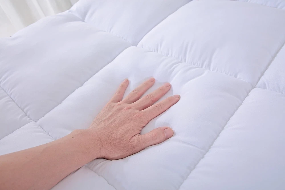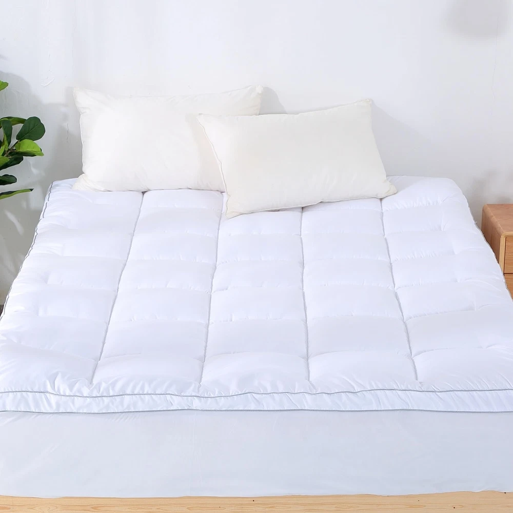 100% Premium microfiber shell and 100% premium down alternative 600GSM filling. Upgrade your sleeping experience with this Cooling Pillow Top mattress pad at an affordable price. Size: Full mattress pad 75"Lx54W"x2"H, 14" elastic material fitted up to 18" deep pocket. Beatuiful box stitch quilting pattern make sure the filling does not shift while provide soft firm support. Fitted Sheet Style:Adopting the deep pocket design which will easily stretch up to 18 inches . This mattress pad is designed to integrate with your existing mattress, it is an essential addition for unparalleled comfort. Machine washable, tumble dry low. Easy care. Vacuum packed, please allow couple of hours for the mattress pad to be fully fluffy. US based women-owned small business.