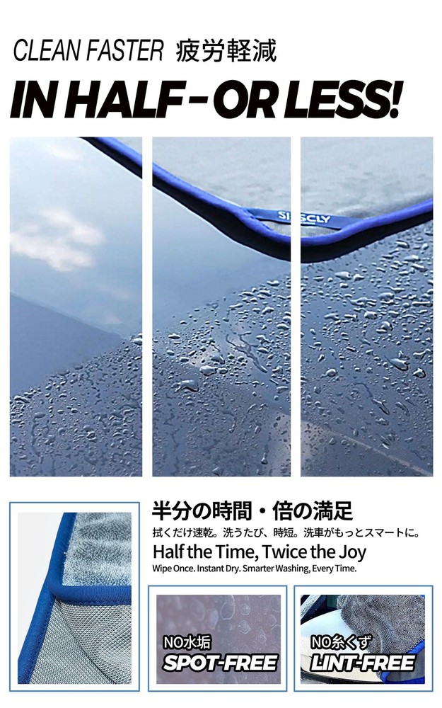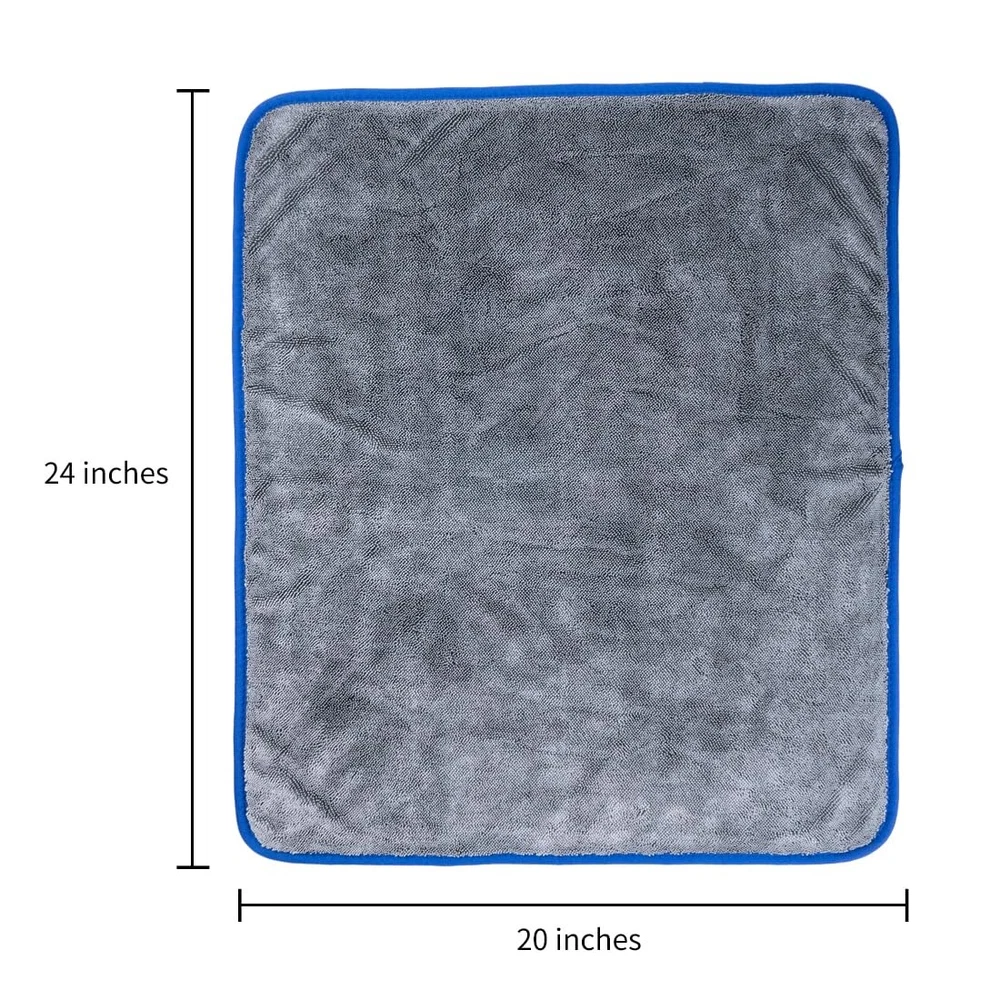 It is the most annoying thing when drying surfaces of automotive paint or window glass that is the residual lints, which is very unattractive and takes time to clean it up. We have found a superabsorbent material that has fast speed of water absorption and high capacity of water absorption for a long time. The material is lint-free, too. We select this towel woven with a long loop twisted process. The fiber is woven into a spiral shape without a fluffy structure, so there will be no lint shedding. And it can absorb moisture quickly. Use instructions: fold the towel in half or a quarter to wipe a surface with fluff side, which is efficient and labor-saving. Or put it flat on the surface of the car and pull the two corners of it to gently drag the water stains, seeing the water stains disappear quickly, and the car glows. Can only absorb water? The car towels can also be used in vehicle interiors. If you use your imagination, you may have a happy surprise. Size: 20 x 24 inches Composition: 80% polyester, 20% polyamide Color: gray with blue silk banded edges Streak free Soft highly absorbent microfiber. Dry your car in a safe and easy way. Appropriate care instructions: car wash towels can be machine washed, washed with clean water, ensure only low-temperature drying, please do not use bleach, fabric softener. Please avoid hooking when using, if you accidentally hook it, it will not affect the water absorption effect. HIGH ABSORPTION - 24 x 20 inches; woven with long loop twisted microfibers, which greatly increases the contact area with water, and absorbs moisture quickly when the twisted fibers gently slide over the paint surface, glass or plastic surface of the car CONVENIENCE - The car drying towels are the right size for your hands. Two towels can meet your different needs and requirements for quick-drying. You can easily drain the water from the body of a freshly washed car as well. You don't have to worry about the towels being towed to the floor when you clean the car LINT-FREE STREAK-FREE - The edges of the drying towel are also trimmed with soft silk stretch cloth to ensure that the towel does not cause any damage to car paint. The spiral twisted woven structure won't almost leave lint on your car surface, car glass or your hands, so you needn't worry about soiling or clogging your washing machine MULTIPURPOSE - The drying towels for cars can also be used in vehicle interiors. The towel is more absorbent than the ordinary towel and takes less time absorbing same water. If you like, it's great to use it to dry your puppy's hair AFTER-SALES SERVICE - If you are dissatisfied with the performance of any of our products, for whatever reason, we will do our best to satisfy you