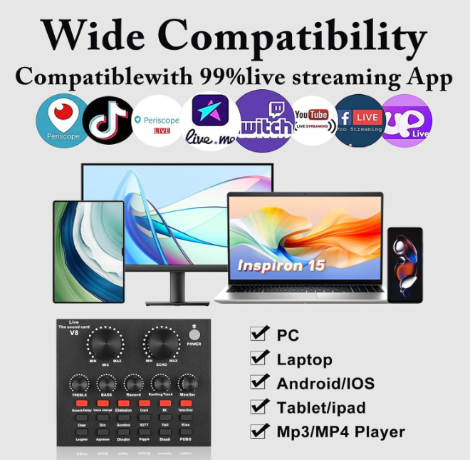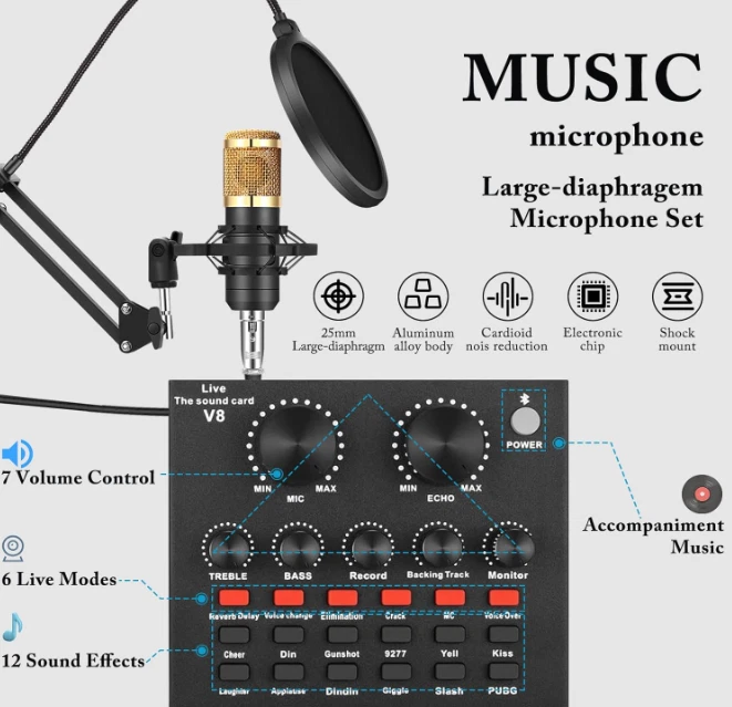 Microfono Condensador De Estudio Profesional Para PC Youtubers Podcast BM 800 US Excelente calidad de sonido: el micrófono de condensador utiliza tecnología avanzada de reducción de ruido inteligente y tecnología de captación cardioide para captar su voz en todas las direcciones. El filtro antipop de doble capa y la tapa de espuma a prueba de viento reducen aún más el ruido, y luego es procesado por el chip DSP profesional de la tarjeta de sonido para garantizar un sonido claro y completo. Paquete de equipo de podcast todo en uno: el paquete de equipo de podcast está equipado con un micrófono de condensador BM-800, filtro antipop de doble capa, un soporte de brazo de tijera de suspensión ajustable, soporte de choque, tapa de espuma antiviento, auriculares, cable de alimentación, tarjeta de sonido en vivo. Preferible para que realice podcasts, transmisiones en vivo, transmita medios y grabe música y videos cortos. Tarjeta de sonido multifuncional: la clásica tarjeta de sonido V8 puede ajustar cuatro modos de sonido para satisfacer las necesidades de su blog, y también puede ajustar cuatro variantes de sonido (femenino, masculino, infantil y monstruo) con 10 efectos de sonido especiales, agregando más diversión a su transmisión en vivo. Potente compatibilidad: la interfaz de audio tiene una fuerte compatibilidad, compatible con teléfonos inteligentes, PC, PlayStations (PS4, Xbox...) y más. Puede ser compatible con Windows, iOS, Android, Mac OS, Chrome OS y más. Este kit de dispositivo de podcast satisface las necesidades de la mayoría de los escenarios. Unidad libre, plug and play. Conexión USB Plug and Play: tan fácil como conectar y usar, solo use los cables, auriculares, para conectar con la tarjeta de sonido y el equipo que desee, y funciona automáticamente con su computadora portátil de escritorio Mac o Windows - no requiere alimentación fantasma, por favor úselo como completamente cargado. (se descargará un software automáticamente) Atención: cuando esté usando el dispositivo por primera vez o el producto no se haya usado durante mucho tiempo, le sugerimos que primero cargue completamente la batería para garantizar el uso normal del producto. Si el controlador no se descarga automáticamente, puede comunicarse con nuestro equipo de posventa profesional de ALPOWL y haremos todo lo posible para ayudarlo a resolver el problema. PROMESA DE ALPOWL: Nuestro objetivo es proporcionar productos de alta calidad para brindar alegría a su familia y amigos. 《Servicio de reemplazo sin motivo de 365 DÍAS y 40 días sin motivo para devolución, soporte tecnológico DE POR VIDA, ¡ordene con total confianza!》Solo contáctenos si tiene alguna pregunta y haremos todo lo posible para ayudarlo a resolver cualquier problema. ENVÍO: ¡Ofrecemos envío GRATIS en todos los pedidos! Enviamos dentro de los tres días hábiles posteriores al pago, generalmente antes. Utilizamos una selección de servicios de envío como UPS, FedEx, USPS, etc. Solo enviamos a los 48 estados inferiores, no se permiten direcciones APO/FPO ni apartados postales. En este momento, no se ofrecen recogidas locales ni opciones de envío combinado. PAGO: Aceptamos pagos mediante cualquiera de los siguientes métodos: PayPal ¡Pague lo antes posible después de ganar una subasta, ya que eso nos permitirá enviarle su artículo antes! COMENTARIOS: La satisfacción del cliente es muy importante para nosotros. Si tiene algún problema con su pedido, comuníquese con nosotros y haremos todo lo posible para que quede satisfecho. ¡Gracias por comprar con nosotros!