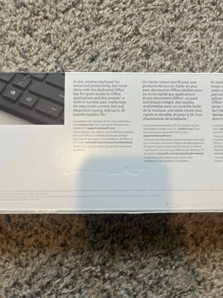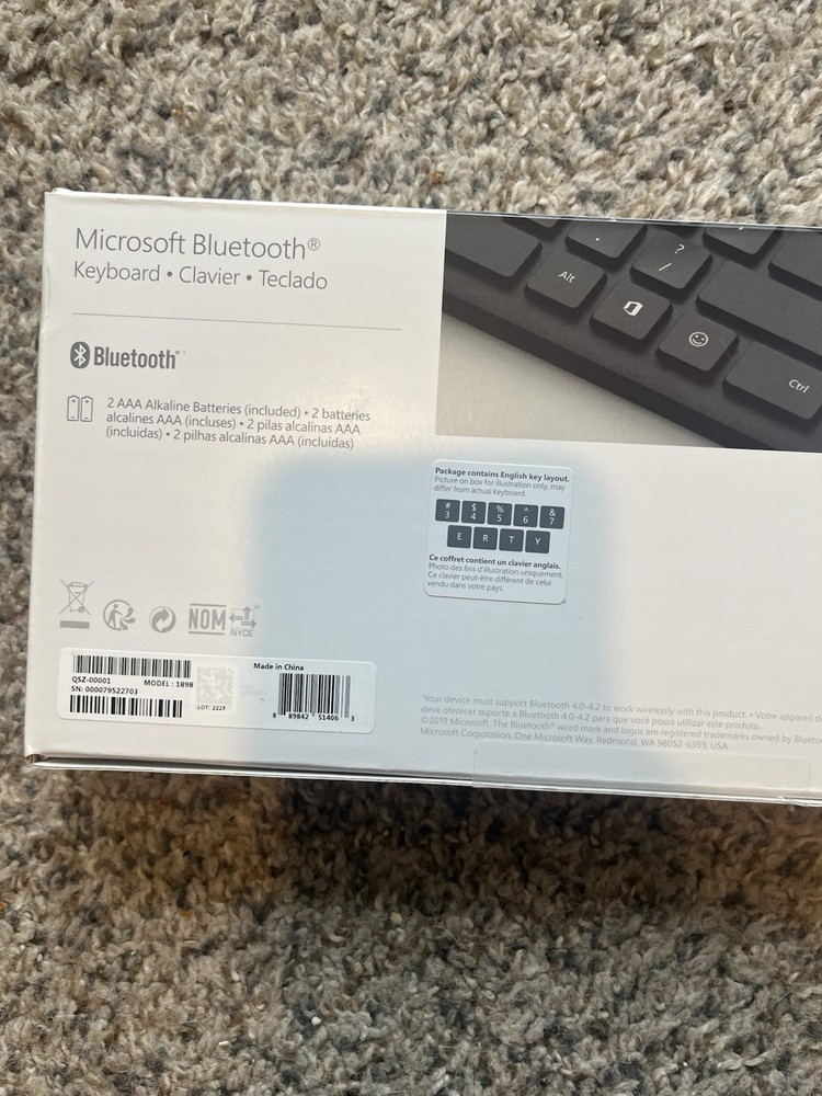This is the Spanish version of the Microsoft Bluetooth Keyboard It is in like new condition. Open box/customer return item. Works perfectly fine.