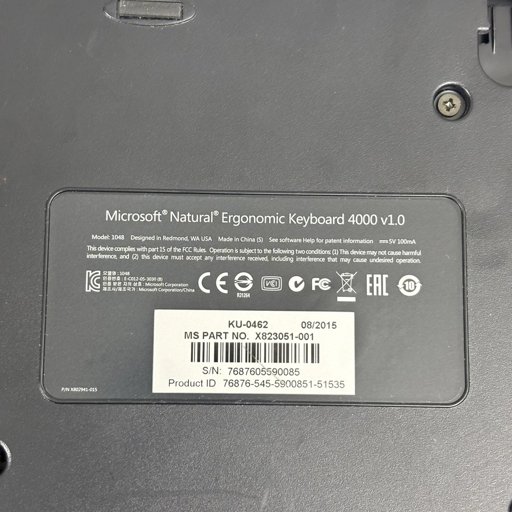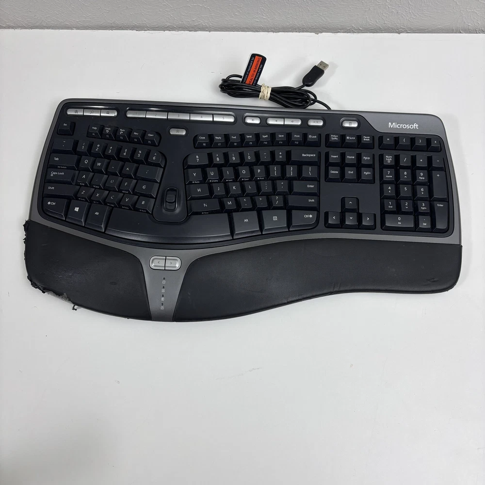 Keyboard Language: English Type: Ergonomic Item Length: 19.5 in Color: Black Keyboard Layout: QWERTY (Standard) Features: Enhanced Function Keys, Multimedia Integration, Plug & Play, Flip Up Feet Model: Microsoft Natural Brand: Microsoft Country/Region of Manufacture: China gtin13: Does not apply Connectivity: USB MPN: X823051-001 UPC: Does not apply