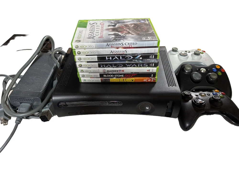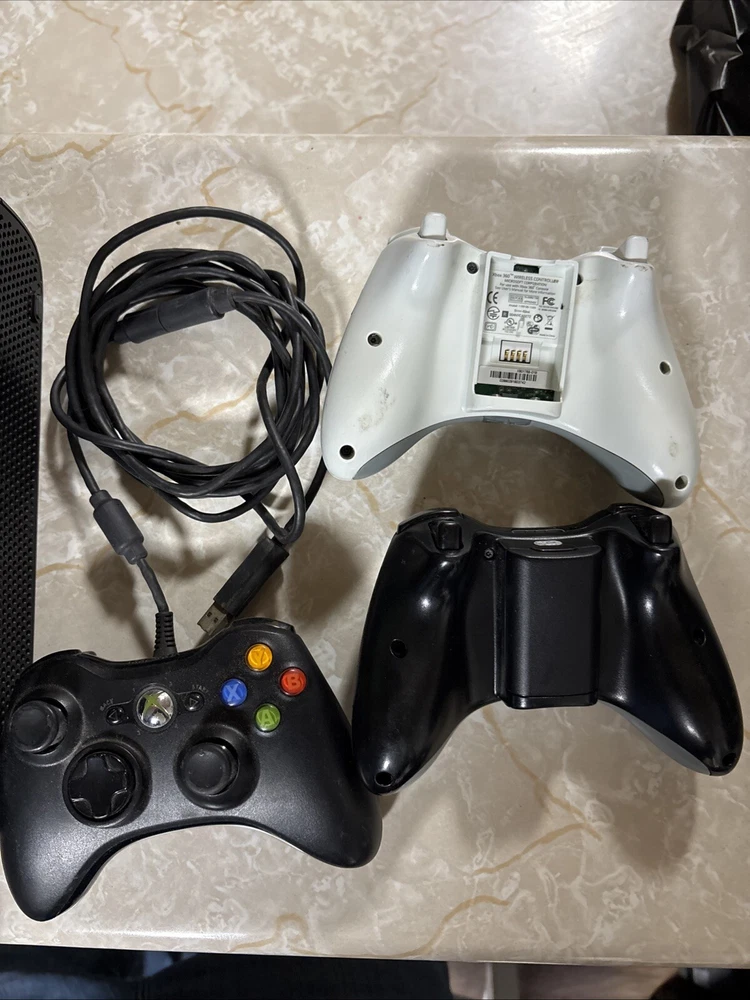 Good condition, used as is , tested works great , white controller is missing back battery part , other 2 controllers are complete thank you Get ready to immerse yourself in the world of gaming with this Microsoft Xbox 360 Elite Console. With a storage capacity of 120GB, you can store a large number of games and media. This console is perfect for gamers who want to take their gaming experience to the next level. It comes with a lot of games including Halo and Assassin's Creed that will keep you entertained for hours. This console is designed to deliver an exceptional gaming experience with its advanced technology. The sleek and stylish design of this console makes it a great addition to any entertainment setup. It is perfect for playing the latest games, watching movies, and listening to music. Whether you are a hardcore gamer or just looking for a console to enjoy some entertainment, this Microsoft Xbox 360 Elite Console is the perfect choice.