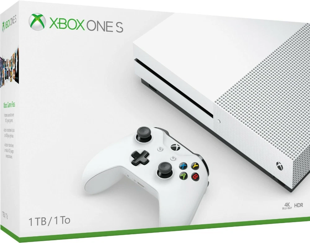 Elevate your gaming experience with the sleek Microsoft Xbox One S, boasting a 1TB hard drive to store your favorite games, apps, and media. The white console is a stylish addition to any entertainment setup, complemented by its 4K UHD resolution for crisp, vivid visuals. Enjoy a seamless gaming experience with Wi-Fi capability, internet browsing, and connectivity options including HDMI and USB-A ports. The Xbox One S is also Blu-Ray compatible, offering a versatile home console experience for both entertainment and play.