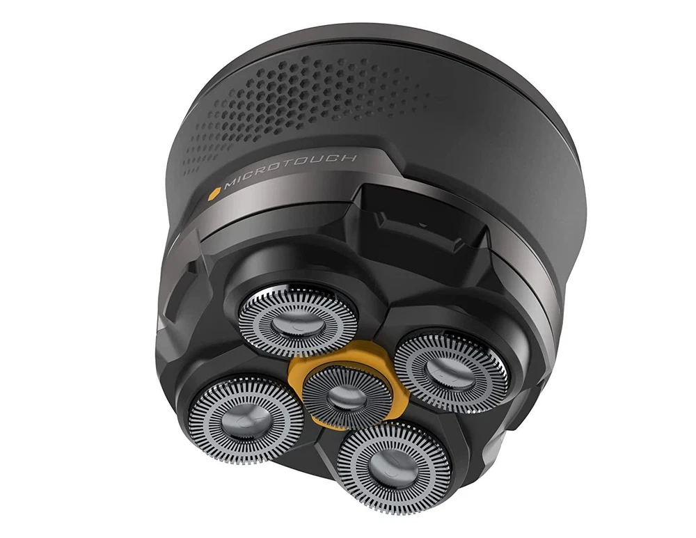 Microtouch Titanium Electric Head Shaver - Rechargeable Head and Face Shaver for Men, Cordless Razor, Hypoallergenic Wet/Dry Shaving, Precision Head Trimmer, Lithium Power, Battery Powered Microtouch Titanium Head Shaver is the evolution in electric head shavers for bald men, 5 Stainless Steel Titanium Bonded independent floating heads. For 5X the coverage area of a razor. 5 head floating electric skull shaver contours independently to the curvature of your head for a smoother, safer more comfortable shave. Microtouch Titanium Head Shaver is water resistant and has a built-in hair capture chamber in this bald shaver gathers all your trimmings for easy clean up post shave. Equipped with German Stainless-Steel Titanium hypoallergenic and durable coated blades that resist dulling. The Lithium-driven battery offers 80 minutes of continuous run time off one full charge. Includes travel lock feature.