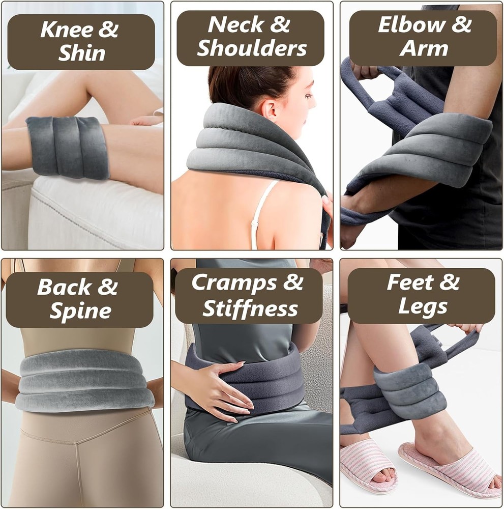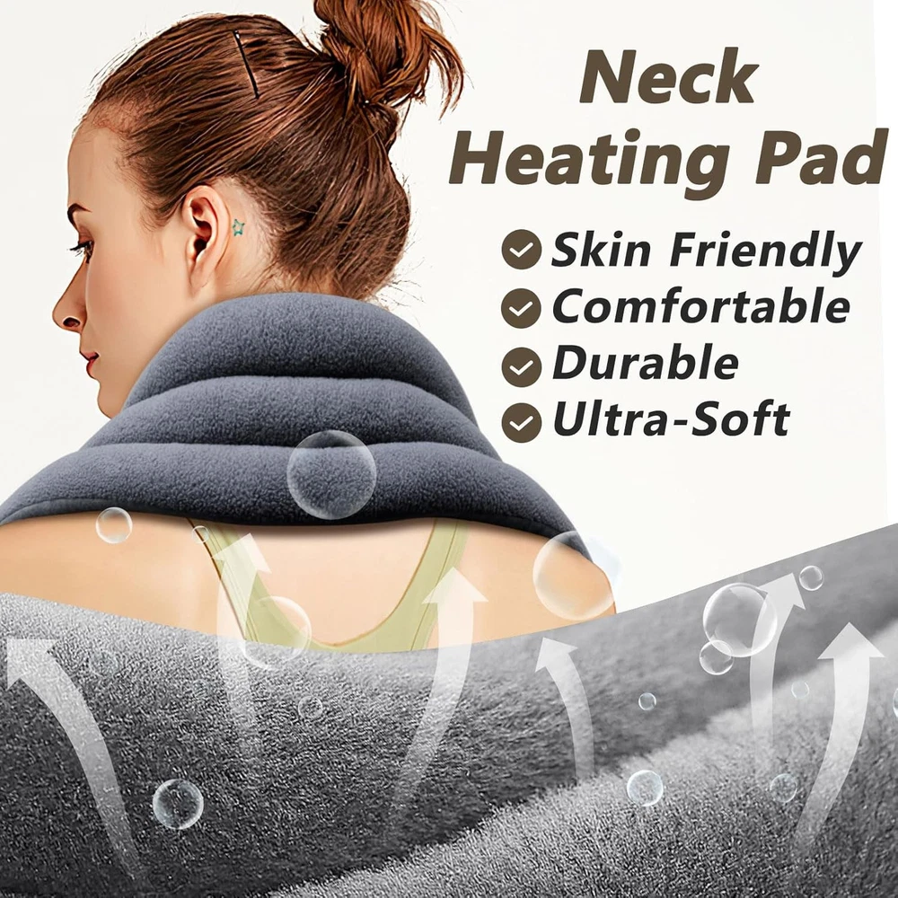 Microwave Heating pad for Neck and Shoulders Back 33 * 5" microwavable Moist Heat Pack Warm hot Compress Neck wrap Weighted Rice Bean Bag Reusable Herbal Nature Calming Portable Grey Product Details Package Dimensions : 12.91 x 5.75 x 2.24 inches; 1.34 Pounds Manufacturer : AiricePac Country of Origin : China Brand: AiricePac Age Range (Description): Adult Number of Items: 1 Unit Count: 1.00 Count Special Feature: Flexible, Microwaveable, Reusable Neck Heating Pad Microwavable: Unlike other neck warmer, our rice heating pad microwavable filled with flaxseed, millets, and clay beads delivers deep, penetrating moist heat and promote blood circulation, help alleviate joints, cramps, tightness, arthritis, swelling. A relaxation gifts providing gentle pressure with soothing moist heat. Double-Side Fabric Design: This neck warmer microwavable designed with Double-side fabric is skin-friendly even for sensitive users. One side made of Dutch Velvet is ultra-soft to skin, while the other side made of polar fleece is silky with extra heat retention. Unique sectioned chamber stitching of this neck heating pad for neck pain mold into your body flexibly, delivering more even and long-lasting heat for instant pain relief and relaxation. Versatile and Flexible: This microwavable heating pads for heat therapy is so soft and flexible to conform to your body, delivers soothing heat therapy to your neck, shoulders, back, arms, leg, ankle, and knee, etc. Great help with acute and chronic pain relief. Microwave neck wrap for pain relief safely to obtain soothing moist heat therapy to reduce inflammation, stress, tension, and pain by promoting circulation. Hot & Cold Compress: (Do Not Overheat): Heat the rice pack heating pad in the microwave for 60~90 sec! You will enjoy up to 20 min soothing and deep moist heat. Freeze the microwave heating pad for neck and shoulders to get a pleasant coldness to reduce swelling due to strains and sprains. Ideal for your loved ones & friends: AiricePac heat neck wrap microwavable provides 100% satisfaction service to customers. Please feel free to reach us if have problems with our moist weighted neck heating pad.