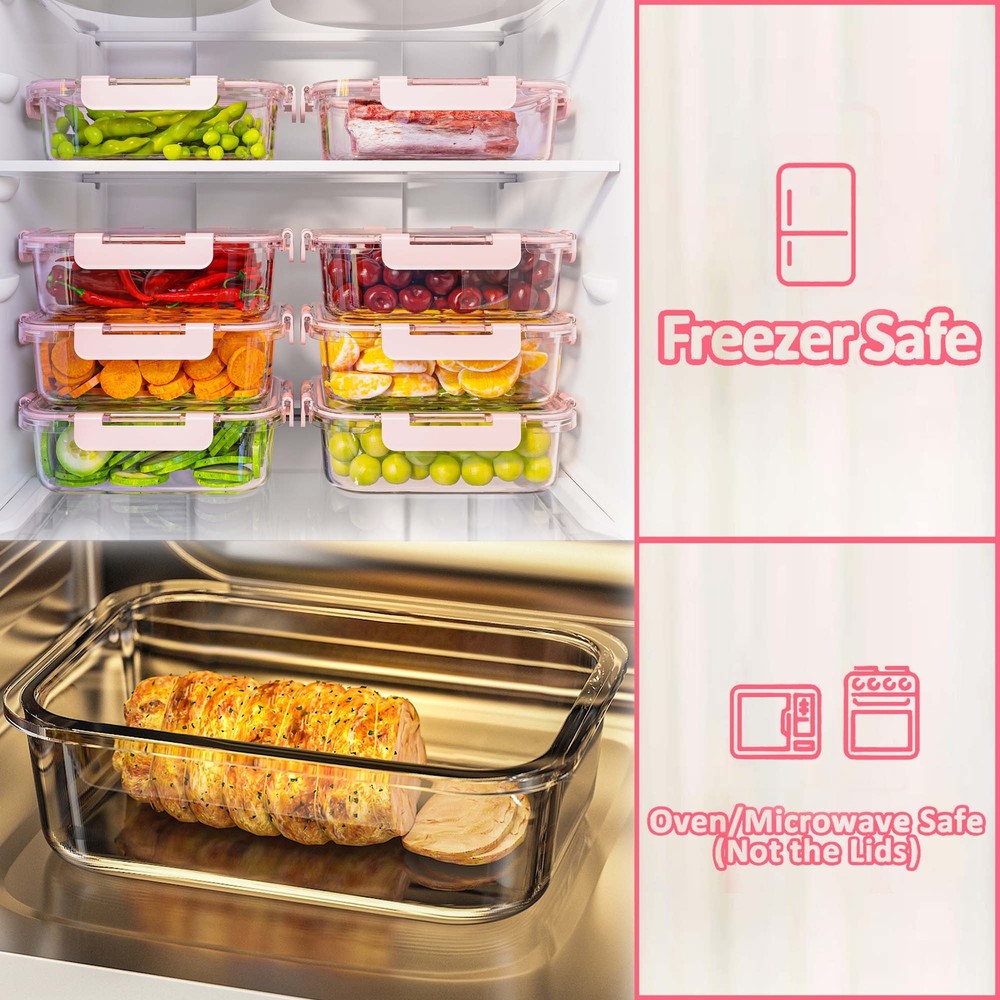 Item description from the seller Buling 20 Pc Glass Food Storage Containers Airtight Lids Microwave/Oven/Freezer & Dishwasher Safe - Steam Release Valve BPA/ PVC-Free -Small & Large Reusable Square & Rectangle Bento Containers 20 piece set - This set includes 10 glass food storage containers 10containers each container has 10 lids. It consists of 5 square containers (34 ounces) and 5 rectangular containers (14 ounces), providing multiple options for storing different types of food BUILT IN VENT - If you want a container that you can pop directly in the microwave or oven, look for a glass container with built-in vents under the locking lid. This type of lid provides the airtight storage you need to keep your food fresh and the convenience you need to reheat food in seconds Airtight And Watertight Silicone Sealed BPA-Free Plastic Lid. Plus Four Tab Locking System. VERSATILE USE - Our food containers are made of high-quality borosilicate glass, ensuring a long service life and providing you with peace of mind. You can use them with confidence in ovens, microwaves, dishwashers (with lids removed), and freezers, as they are BPA free and suitable for daily use.The lid adopts an airtight sealing design to prevent overflow and keep the food fresh. They are easy to clean, suitable for home, office, meal preparation, and dining out, catering to different lifestyles. Multiple options- These containers are not only used for storing food; They can also be used as convenient containers for preparing meals. Whether you are preparing meals or packing work lunches, our glass food storage containers are the ideal choice. Suitable for families, professionals, and students, providing flexible food storage solutions for daily use Elaborate design - Our innovative design simplifies the storage and inspection of items. It helps save valuable space in kitchen cabinets or refrigerators. Transparent glass provides a beautiful and charming display cabinet, making it effortless to identify the items stored inside.