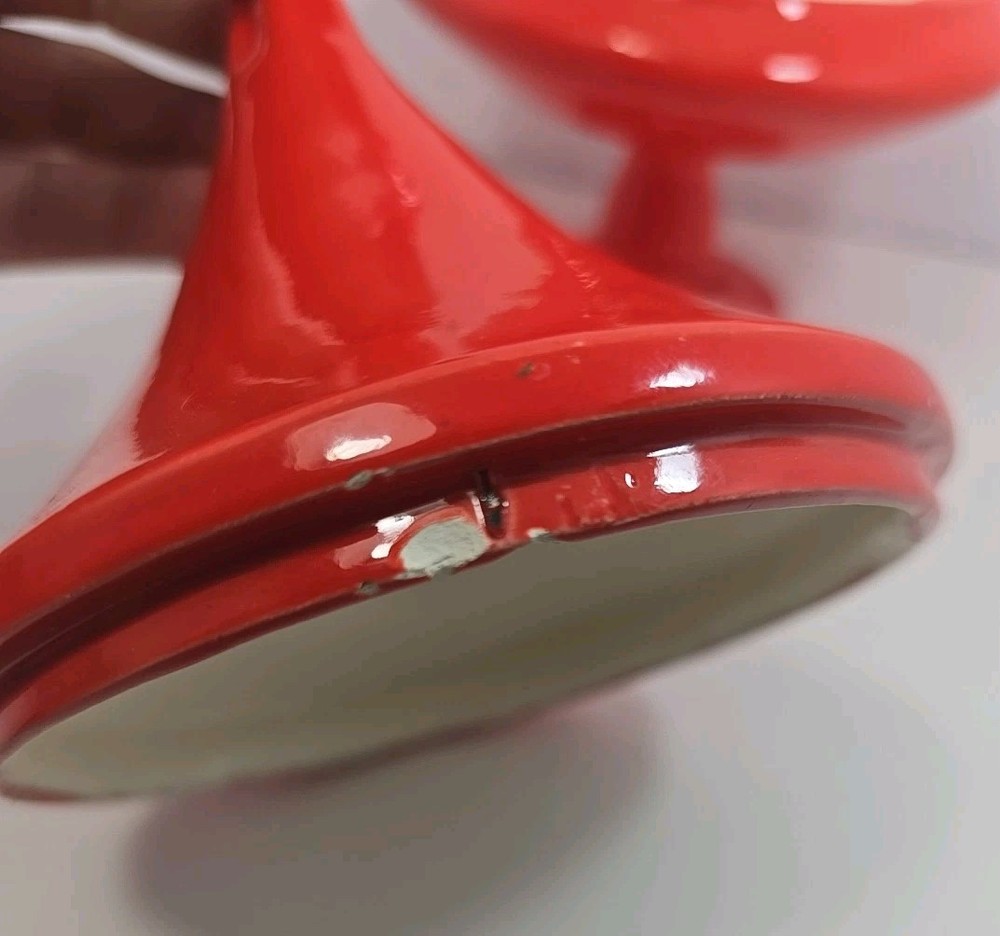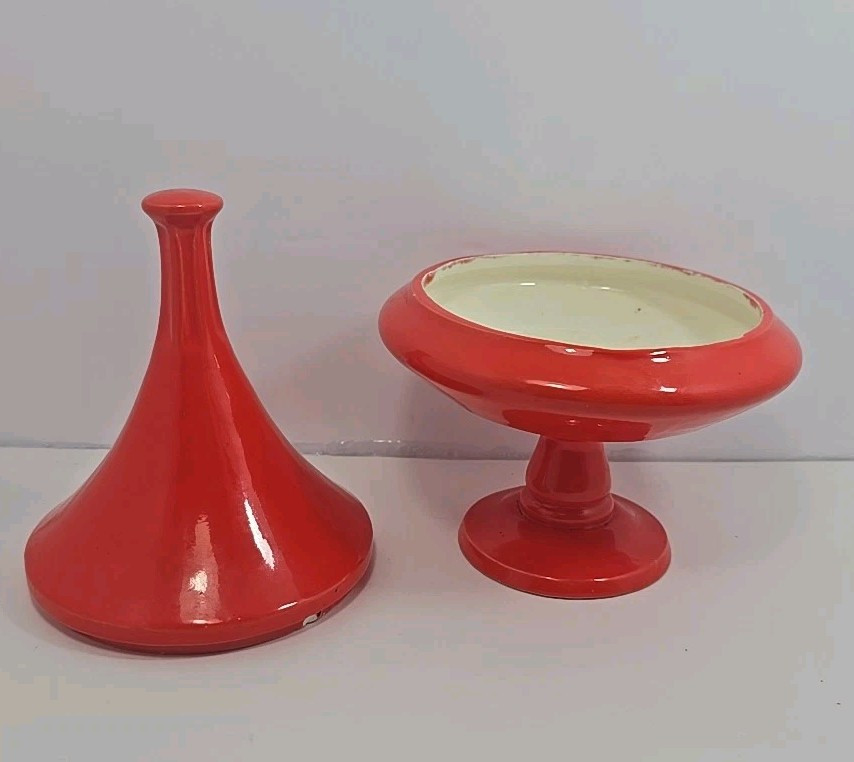 Mid Century Modern Retro Candy Dish Trinket Bowl Vase Planter in Red Orange 8.5 Inches Tall