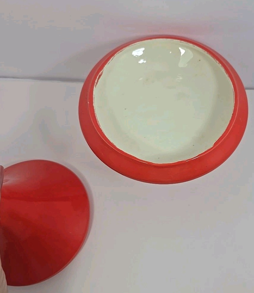 Type:Candy DishProduction Technique:PotteryVintage:YesStyle:RetroBrand:UnmarkedFinish:GlossyOriginal/Licensed Reproduction:OriginalMaterial:GlassShape:RoundNumber of Compartments:1Color:OrangeTime Period Manufactured:1960-1969