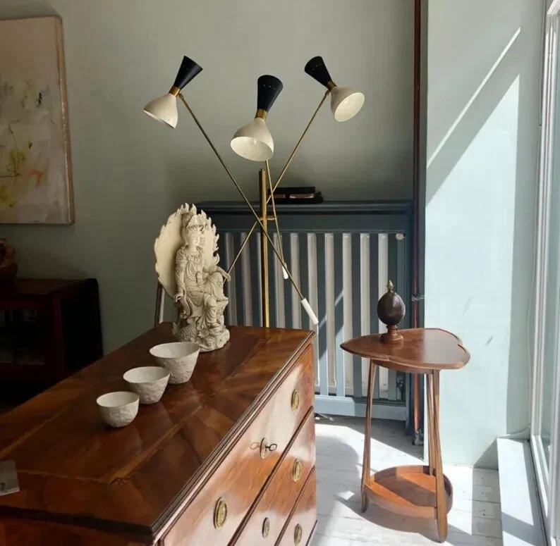 Mid Century Stilnovo Style Italian Modern Floor Lamp With Three Brass Arm With Marble Base Width: 48 inches Height: 48 inches Depth: 48 inches Marble base 12 inchs Description: Mid Century Stilnovo Style Italian Modern Floor Lamp With Three Brass Arm With Marble Base seamlessly blend modern aesthetics with timeless elegance. Crafted by skilled artisans, this single- light articulated sconce is meticulously constructed to bring sophistication and warmth to any room. Featuring a sleek brass finish, The lamp exudes understated luxury, while its articulated arm allows for customizable lighting angles, providing both functionality and versatility. Whether illuminating a cozy reading nook or adding ambiance to a contemporary living space, a discerning homeowner, or an interior decorator seeking to elevate your projects, this Stilnovo- inspired wall lamp is sure to make a lasting impression. Illuminate your home with style and sophistication. Invest in our handmade Stilnovo brass wall lamp today and experience the perfect blend of craftsmanship and elegance. Each component of this chandelier is carefully handmade, ensuring a unique piece that adds character and charm to any room. The curved shade design adds a touch of sophistication, while the vintage-inspired aesthetic brings warmth and nostalgia to your decor. Constructed from high-quality brass, this Sputnik-style light fixture boasts durability and longevity, making it a timeless addition to your home. The mid-century modern design pays homage to iconic design elements while offering a fresh interpretation that suits modern interiors. Choose from various finishes such as antique patina, polished brass, raw brass, brushed brass, black (blackened brass, antique black), and chrome (polished or brushed). We also provide a stunning range of electrophoretic lacquered colors for shades. Our selection of finishes includes antique patina, polished brass, raw brass, brushed brass, black (blackened brass, antique black), and chrome (polished or brushed). Additionally, explore our captivating array of electrophoretic lacquered colors for shades. Available in a variety of finishes like antique patina, polished brass, raw brass, brushed brass, black (blackened brass, antique black), and chrome (polished or brushed), our products also come with the option of electrophoretic lacquered colors for shades, providing a beautiful selection to choose from. Meticulously crafted in our workshop, our products are carefully handmade using 18-gauge brass sheets and UL-listed components. Our process prioritizes the preservation of the material's original essence and artisanal charm, ensuring a high-quality outcome. Crafted with precision in our workshop, each piece is lovingly handmade using 18-gauge brass sheets and components that meet UL-listed standards. We handle our raw materials with care to maintain their inherent texture and artisanal integrity throughout the manufacturing process. - comes hardwired and includes all installation hardware - requires simple assembly Bulbs - requires ONE 25- 75 watt bulb (not included) - E26 (USA and Canada ) or E27 ( UK and Europe) socket type bulb - incandescent bulbs, energy saving, LED bulbs. - bulbs are not included - dimmer switch compatible if fitted with appropriate dimmable bulbs. PERSONALISATION; - If you'd like the sconce as a plug in, we ask that you please make notes in the 'Personalisation' box at checkout as follows- - request for plug -n version - colour of flex ( brown, black or white fabric-covered flex) - length of flex