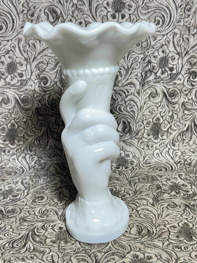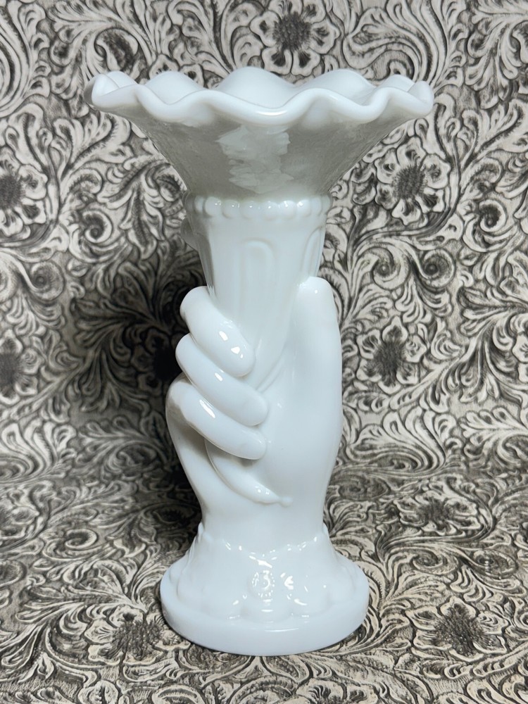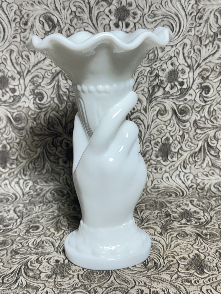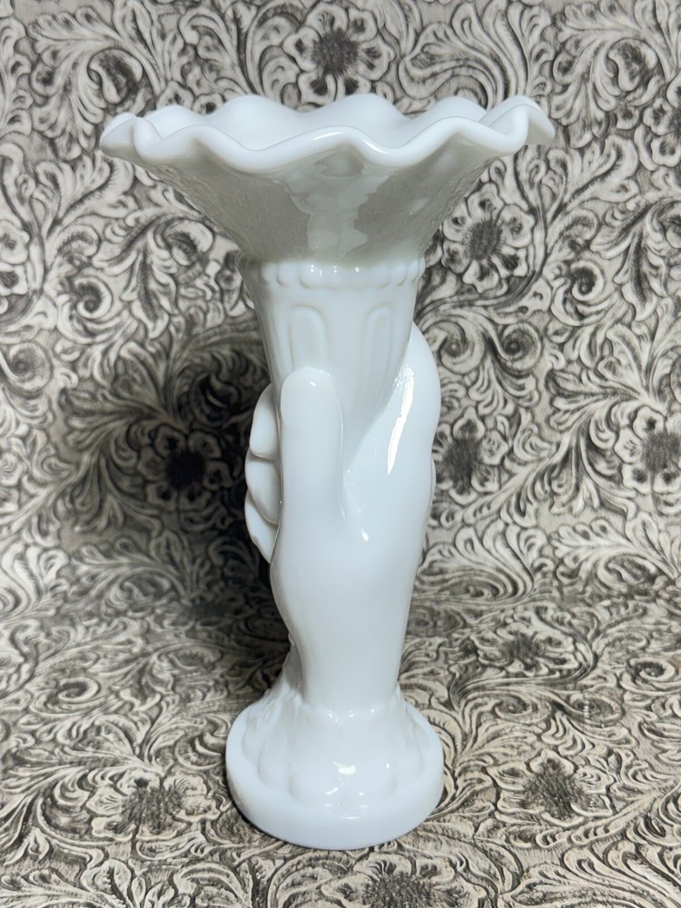 Trinity Antiques ~~~ Description: Mid Century Westmoreland Milk Glass Victorian Hand Holding Flower Vase 8" MCM Measures about .. . 8" Weighs about ... 2 lbs Condition: Please LOOK at the photos ... Overall Condition AS SHOWN ... surface wear ... inside of vase needs cleaning ... Shipping: USPS MAIL / FEDEX ... 2 lbs ... plus packaging & Insured / Signature Confirmation ... PLEASE Check shipping COST before bidding There is a GOOD start price SO a $3 Fee has been ADDED to the cost of SHIPPING to cover expenses :) Love Antiques & Treasures I am not an expert Antique Dealer I just go to local sales & thrift stores & hope to resell :) PLEASE * NO RETURNS * Take time TO READ the Description LOOK OVER PHOTOS ASK QUESTIONS before bidding REVIEW my Feedback score & comments * PLEASE DO NOT BE OFFENDED * BUYERS PLEASE ... try not complaining when you really just want some money back, but still want to keep the treasure :( PLEASE ... try not stealing some items in a lot & just returning what you did not want :( PLEASE ... try not returning your own damaged goods :( PLEASE ... try really hard not to hurt my family with false claims :( ~~~ I have a wonderful & loving 15 year old autistic son :) I truly appreciate YOUR support as every penny of my ebay sales gives us the joyful opportunity to homeschool & work from home Thank You ~~~ May the peace of G*D be with us all ~~~