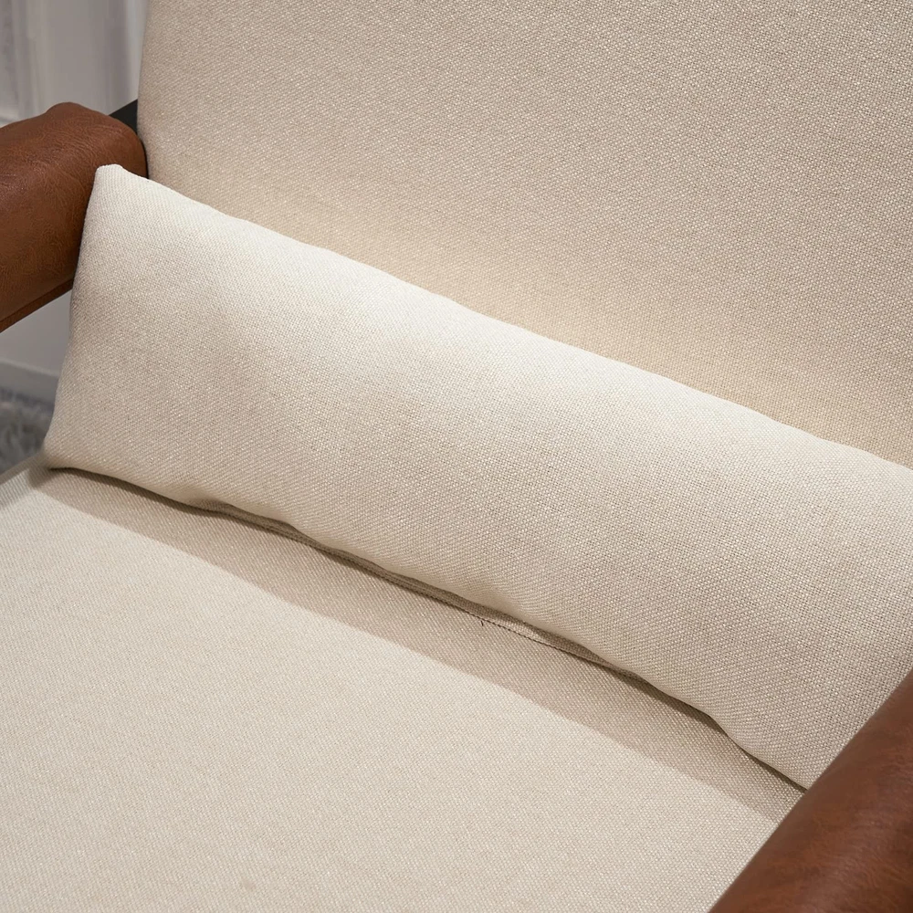 MID-CENTURY & INDUSTRIAL CHARMING - accent chair comes with thick padded seat & backrest, PU leather padded armrest & steel legs, extra pillow, which brings a mid-century & industrial vibe to your space. The beige color of cover and black legs is a nice combination that goes well with any style of decorations and occasions. COMFORTABLE & RELAXABLE - Take a good rest with our lounge chair. The seat and backrest are filled with the high-density & high-resilience sponge, which brings maximum comfort & cozy to you to enjoy and relax yourself after work. The padded armrest and extra pillow also add comfort when sitting. STABLE & DURABLE STRUCTURE - The heavy-duty metal frame provides the necessary weight support for the chair so that this armchair can hold over 350lbs. Durable and strong materials ensure long-term service. There are non-slip leg pads protecting your floor from scratches. VERSATILE SCENES - This leisure chair is covered by linen fabric upholstery, which provide you a cozy seating with high breathability. You can get an enjoyable relaxation easily with our chair no matter if it is placed in the living room, bedroom, balcony, porch, or other space you like. PURCHASE WITH CONFIDENCE - In case you receive product with any flow or damageds, feel free to contact us with pictures for a kindly check. It will save your time that we find the problem and provide the solutions.