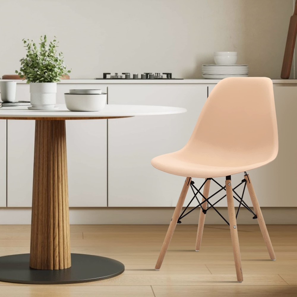 This chair is a fantastic blend of style and comfort! The ergonomic curved seat provides excellent back support, making it great for long meals or work sessions. The sturdy wood legs and black supports give it a sleek, modern look while ensuring stability. It fits perfectly in any space—dining room, office, or even a cozy living room setup. The design is simple yet elegant, adding a touch of sophistication wherever you place it. Highly recommend for both home and office use!