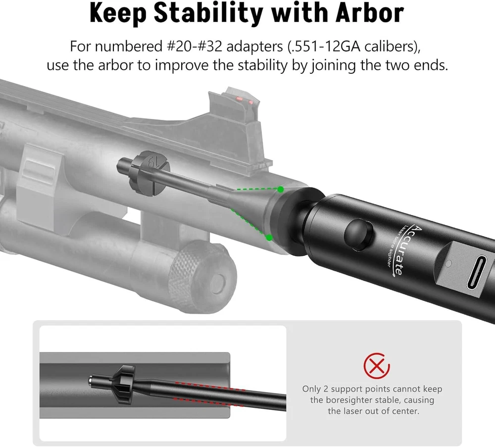 MidTen Laser Bore Sight Kit, Professional Red/Green Laser Bore Sight with 32 Adapters Fit 0.17 to 12GA Cal, Multiple Caliber Bore Sight Kit for All Gun, Powerful Hunting Rechargeable Bore Sight Tool [Rechargeable Bore Sighting Kit] Upgraded rechargeable design, MidTen laser boresighter kit comes with a charging cable to eliminate the need for frequent battery replacements. With only 2 hours of charging, the bore laser can last continuously for up to 17 hours. [Universal Bore Sight Kit] MidTen multiple calibers bore sighter kit features 32 numbered adapters to fit 0.17 to 12GA calibers. Clear user instructions and identifiable serial numbers provide an accurate range differentiation for calibers, simplifying your choice of the right equipment. [MidTen Accuracy Boresighter] MidTen is always doing well in accuracy, which benefits from laser-centering detection before the bore sight leaves the factory. The arbor also helps to maintain stability even when installing the large-size caliber bore sighter. [Portable Hunting Bore Sight Tool] The bore sight laser and all other accessories are packed in a portable storage case. Makes the laser boresighter kit convenient to carry to the range. [Bright Green Laser Bore Sight] Class IIIA laser, output less than 5mW. 30-300 yards visible sighting range. Boresighter kit with green laser is easier for your eyes to pick up, and is easy to know where your aiming.