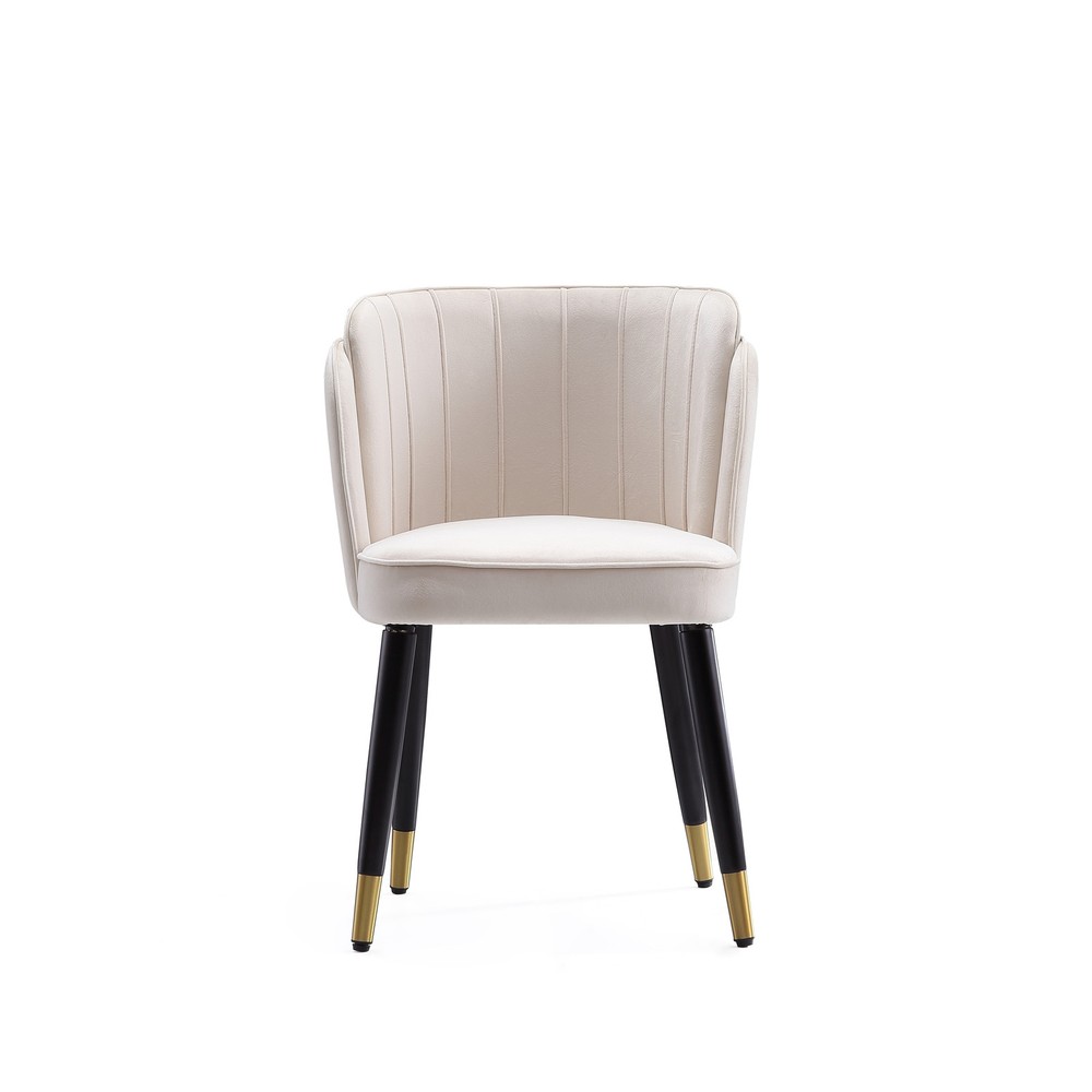 Complete your retro aesthetic with the detailed Zephyr chair. The rounded frame is upholstered with rich velvet and detailed with tufted stitching for timeless texture. Black lacquer and gold caps accent the solid wood legs for a final touch of mid-century charm.Features: Tapered, solid wood legs Velvet upholstery Mid-century modern style Cream, green, or dark blue color Gold-capped feet Black lacquer finish Rounded seat back Tufted detailing Assembled Measures 30.7 inches high x 21.26 inches wide x 21.65 inches deep Free Shipping Over $49.99* Details Ceets Zephyr Mid-century Modern Tufted Velvet Dining Chair Product Description: Complete your retro aesthetic with the detailed Zephyr chair. The rounded frame is upholstered with rich velvet and detailed with tufted stitching for timeless texture. Black lacquer and gold caps accent the solid wood legs for a final touch of mid-century charm. Features: Tapered, solid wood legs Velvet upholstery Mid-century modern style Cream, green, or dark blue color Gold-capped feet Black lacquer finish Rounded seat back Tufted detailing Assembled Measures 30.7 inches high x 21.26 inches wide x 21.65 inches deep