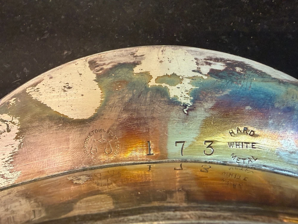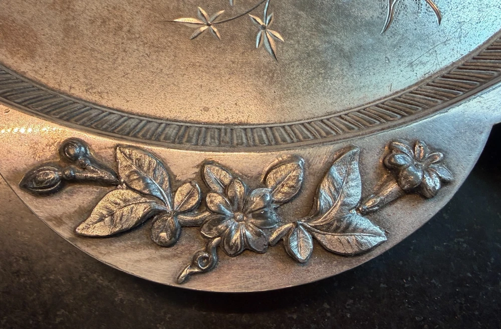 Material: Hard White Metal (Plated) Antique: Yes Occasion: All Occasions Brand: Middletown Plate Co Pattern: Floral Vintage: No Culture: American Type: Collector Plate Country of Origin: United States Style: Victorian Era: Victorian (1837-1900) Color: Silver Time Period Manufactured: 1850-1899 Seller Notes: “Overall good vintage condition with visible age-appropriate wear.”