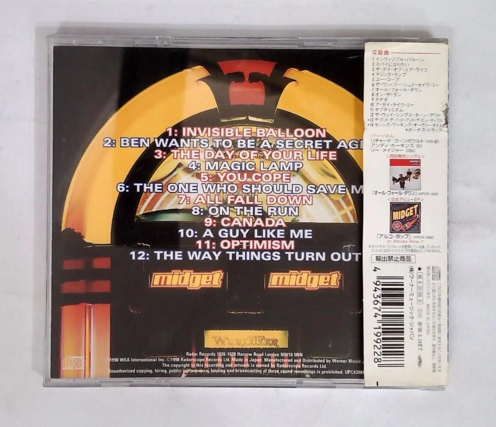 1 Invisible Balloon 4:07 2 Ben Wants To Be A Secret Agent 2:50 3 The Day Of Your Life 3:23 4 Magic Lamp 4:10 5 You Cope 3:37 6 The One Who Should Save Me 3:48 7 All Fall Down 2:08 8 On The Run 2:35 9 Canada 3:23 10 A Guy Like Me 3:36 11 Optimism 3:40 12 The Way Things Turn Out 4:27 Bonus Tracks: 13 The Good The Bad And The Beautiful 14 Senses Working Overtime