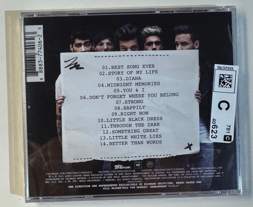 Release Year: 2013 Release Title: Midnight Memories Artist: One Direction Record Label: Sony, Sny gtin13: 0888837740623 Genre: Pop Format: CD UPC: 0888837740623