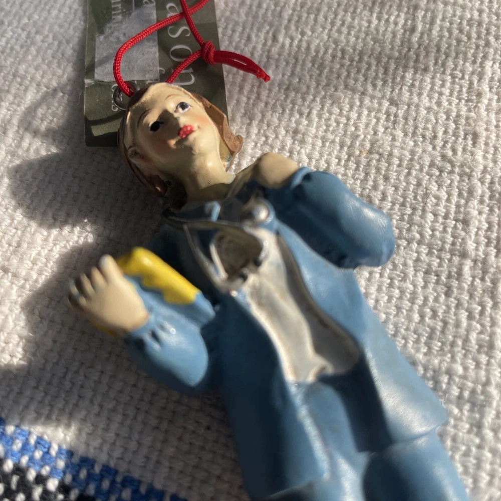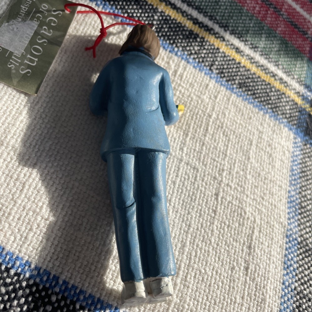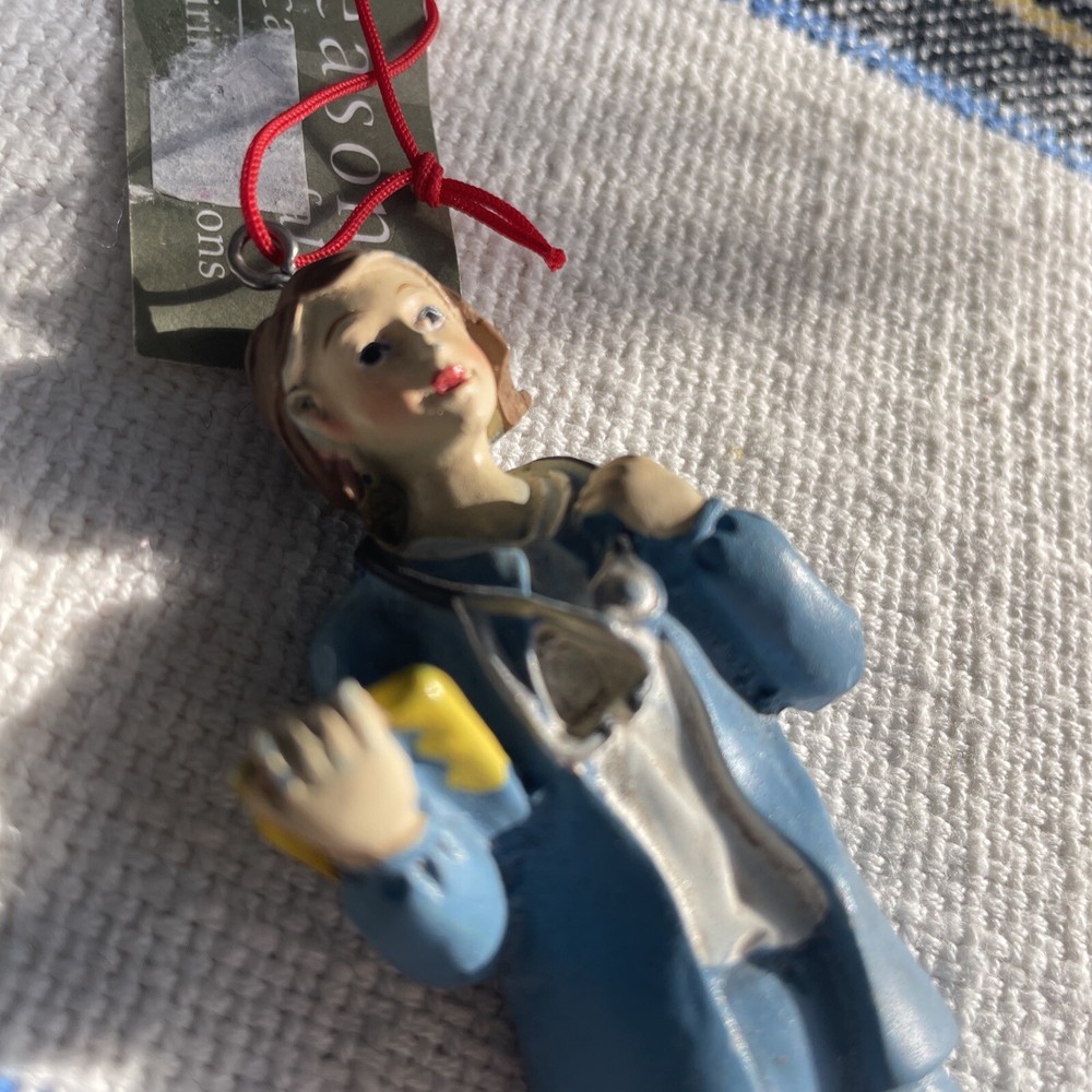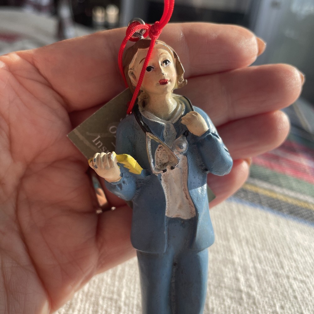 The product is a Midwest-CBK nurse ornament featuring a brunette nurse in a brown color. It is made of resin and designed as a hanging ornament with a size of 4.5 inches. The ornament is from the year 2006 and is part of a set that includes just one item. It is themed around nursing/medical and would be suitable for all occasions, making it a thoughtful gift or decoration for anyone in the healthcare field.