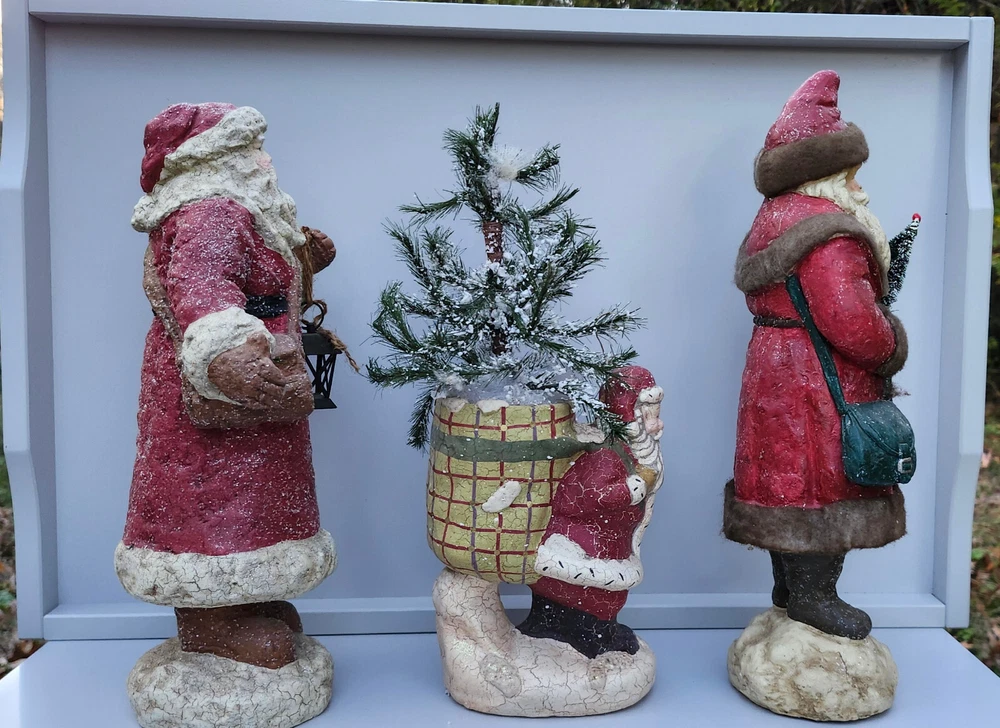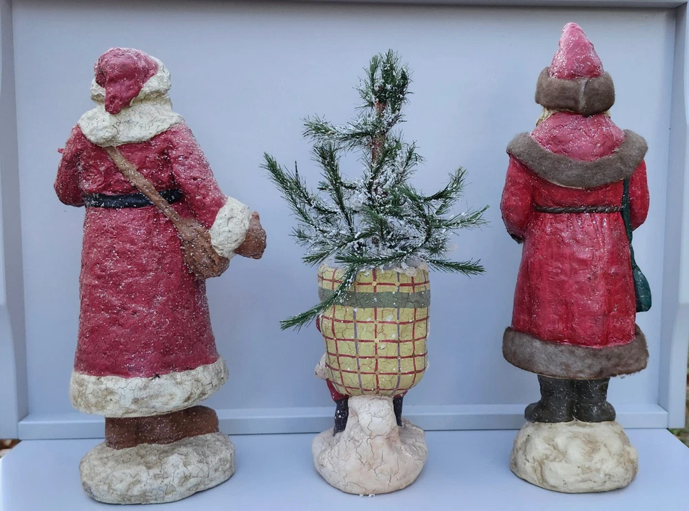 🎅 Lot of 3 Midwest of Cannon Falls Old World Santas with Crackle Finish! Santa with Lantern & Cardinal: 12" tall x 6" wide Santa with mini tree & Satchel: 13.25" tall x 3.25" wide Santa with Backpack & Christmas Tree: 12.5" tall x 6" wide