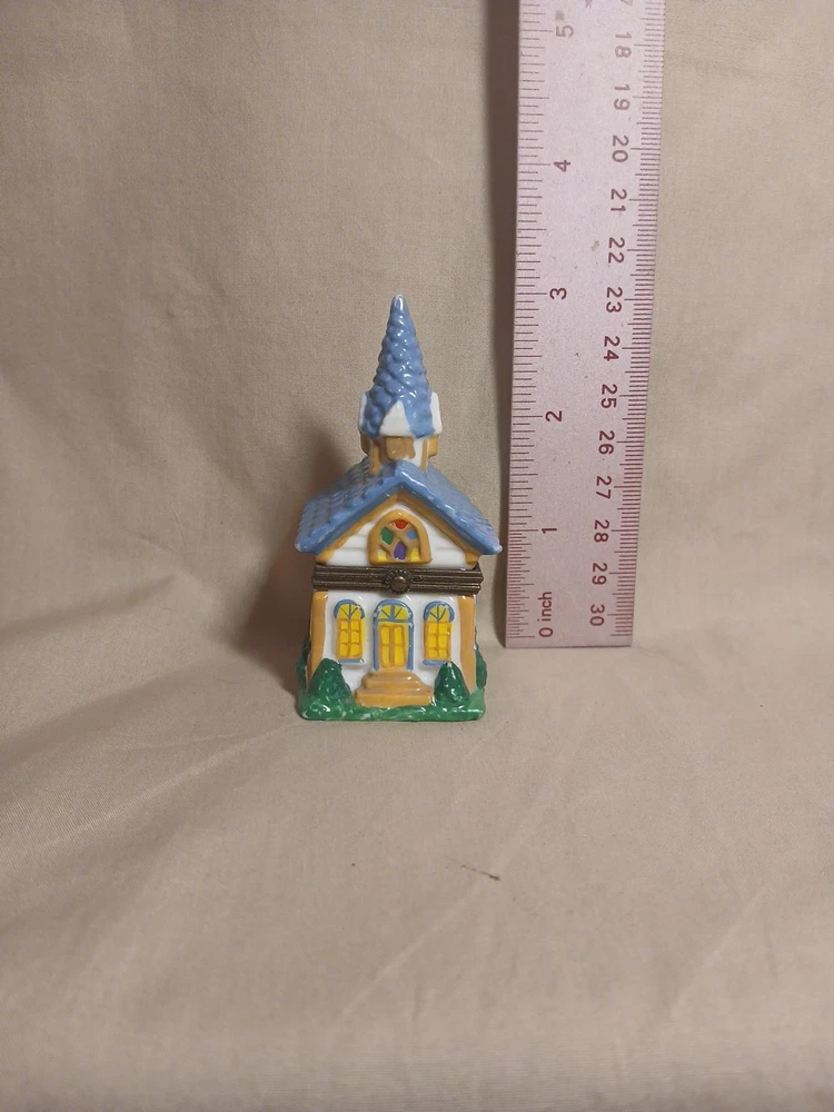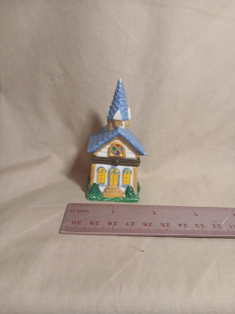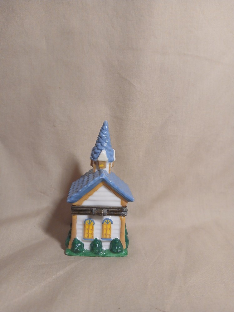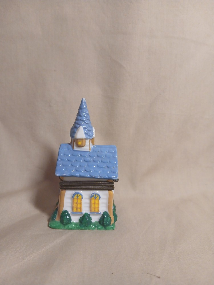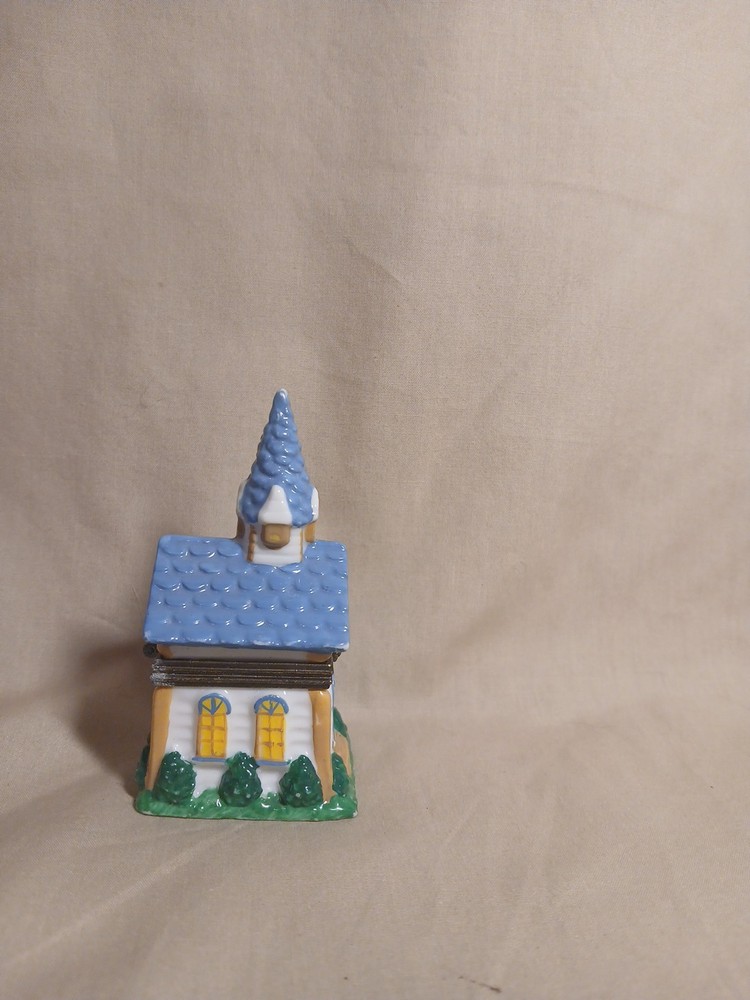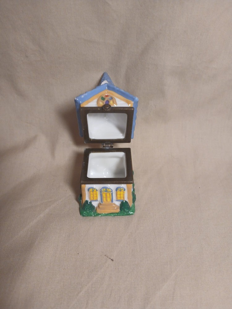 The Midwest of Cannon Falls Church Porcelain Hinged Trinket Box is a small, glazed porcelain box featuring a hinged opening. With a religious theme and a subject of a church, this trinket box is perfect for occasions like Christening and Baptism. The multicolor design and small size make it a unique and thoughtful gift for anyone with a faith-based occasion coming up. Made in China, this collectible item adds a touch of elegance and spirituality to any space.