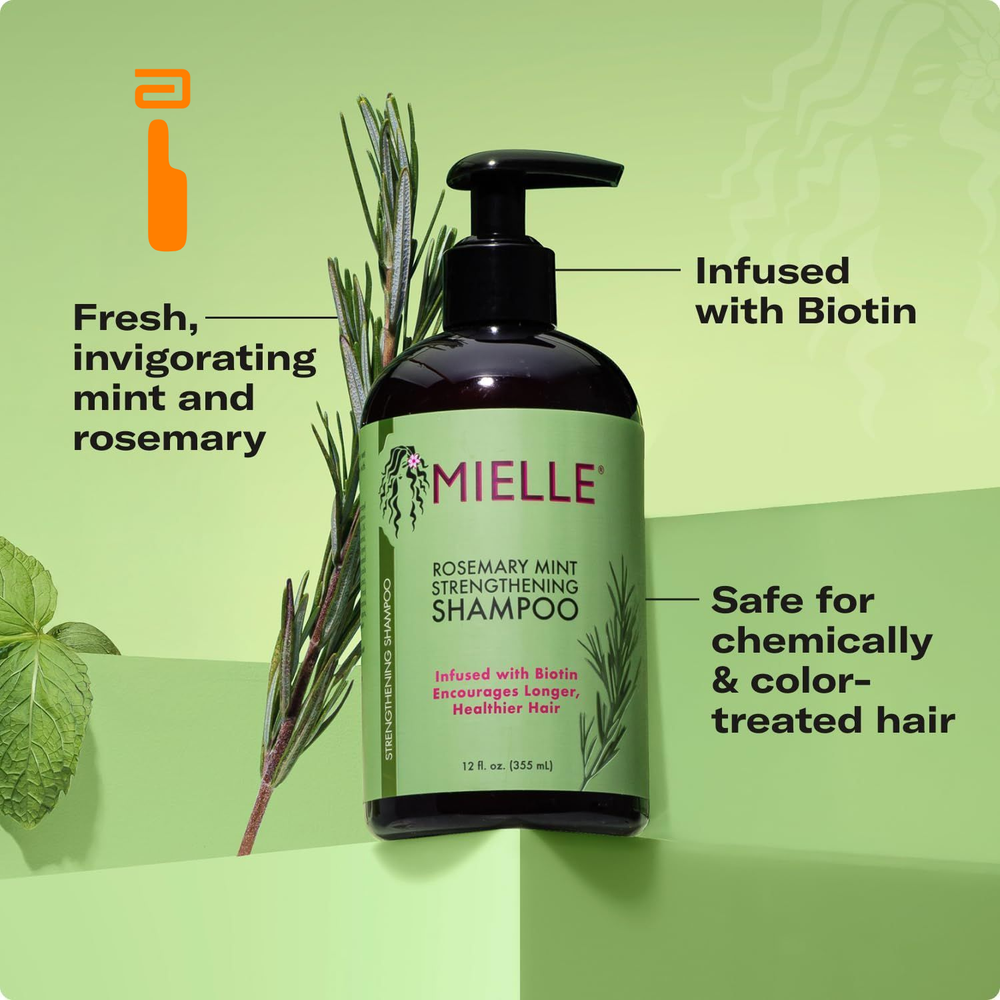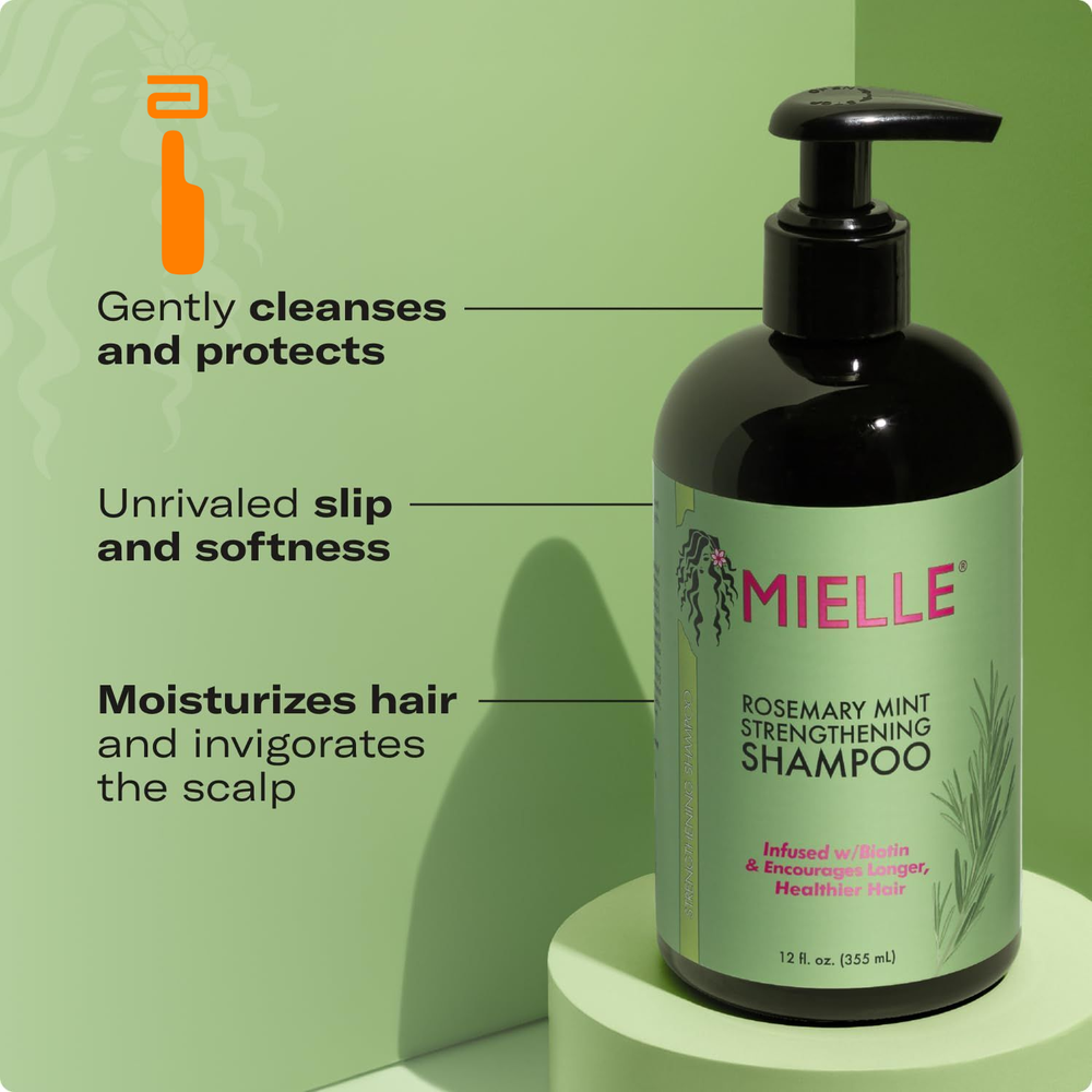 Mielle Organics Rosemary Mint Hair Strengthening 12 Fl Oz (Pack of 1), white Product Details Strengthening Biotin Formula - The Rosemary Mint Shampoo is enriched with biotin to support stronger, healthier hair over time by targeting weak, brittle strands at the root. Moisturizing Ingredients - This shampoo for damaged hair is infused with nutrient-rich coconut oil and babassu seed oil to replenish moisture and restore vitality to dry, brittle strands. Gentle Scalp-Cleansing Lather - Our rosemary shampoo provides a sulfate-free, non-stripping lather ideal for textured hair types in need of gentle cleansing and hydration. Stylists Recommend - Apply to wet hair, massage the moisture locking shampoo into the scalp to activate the rosemary mint lather, and rinse thoroughly. Follow with the Rosemary Mint Hair Masque for best results. Healthy Ingredients, Healthier Hair - At Mielle, we do more than care for hair. We champion it. Our curly hair products are scalp-loving, innovation-driven, and made to nourish, strengthen, and support your hair care journey with intention and performance in every drop.