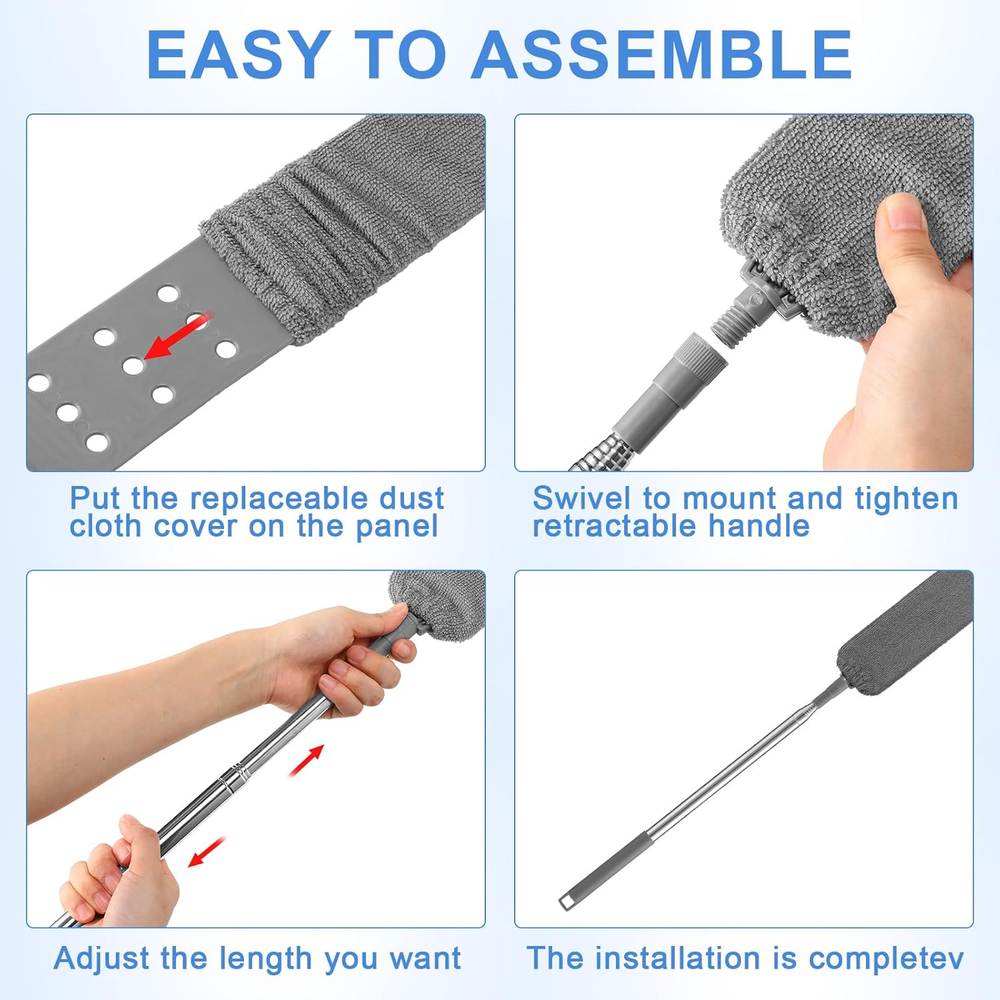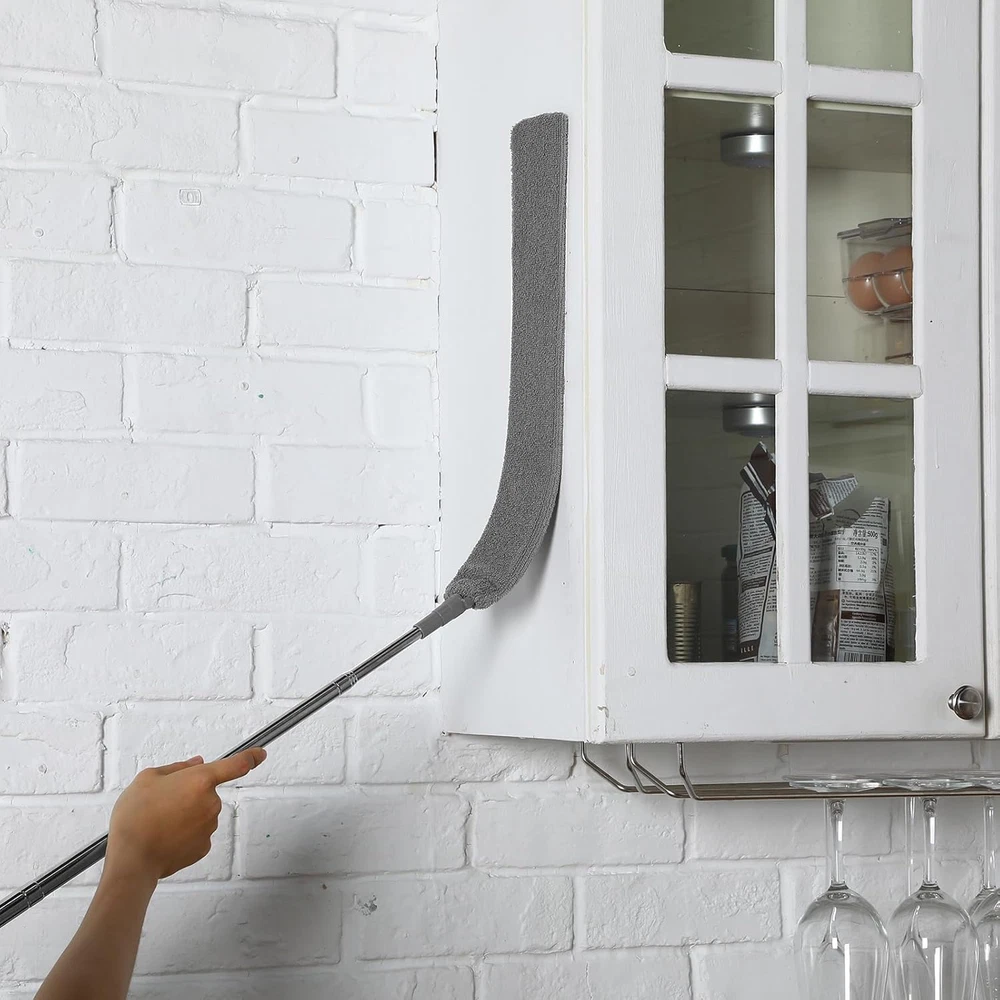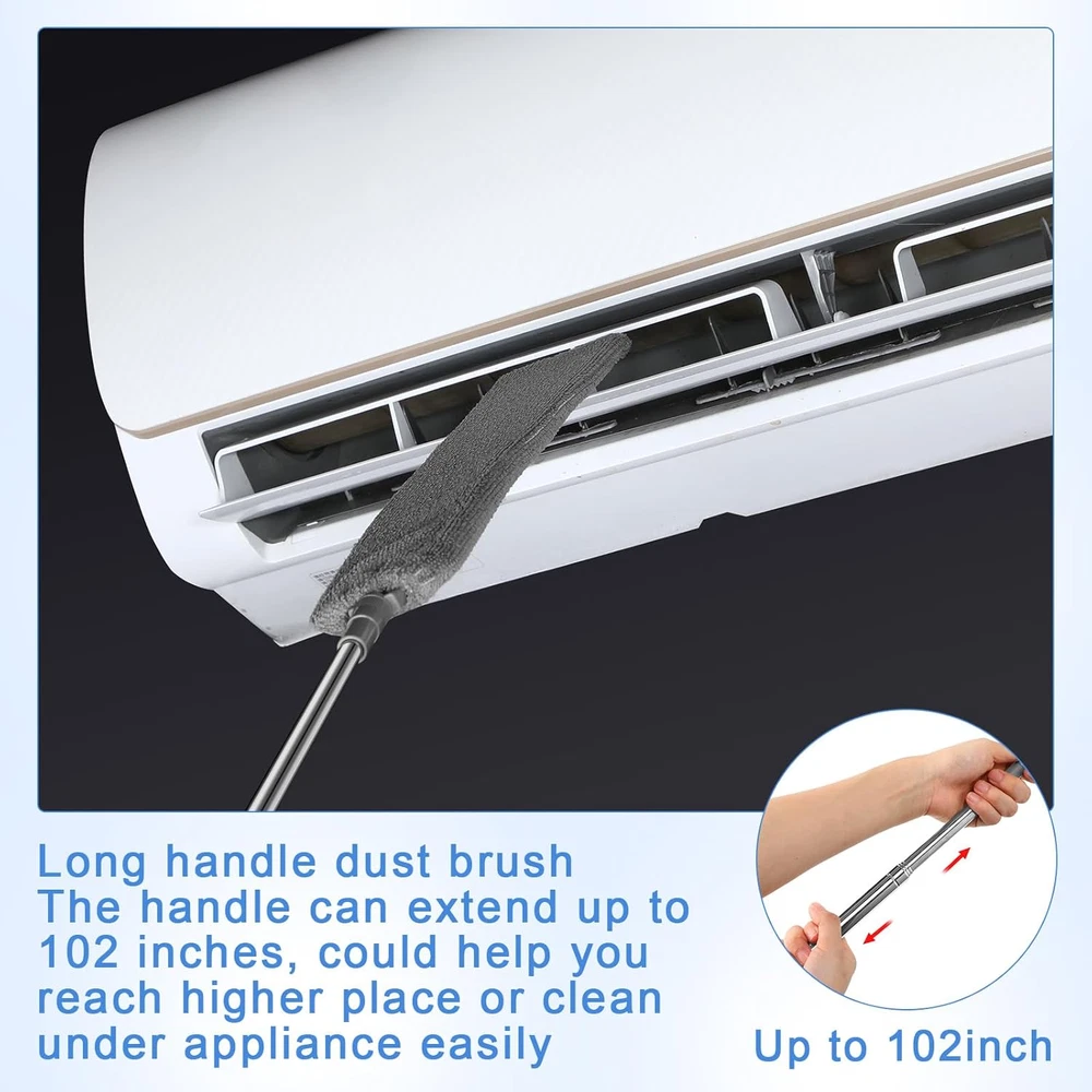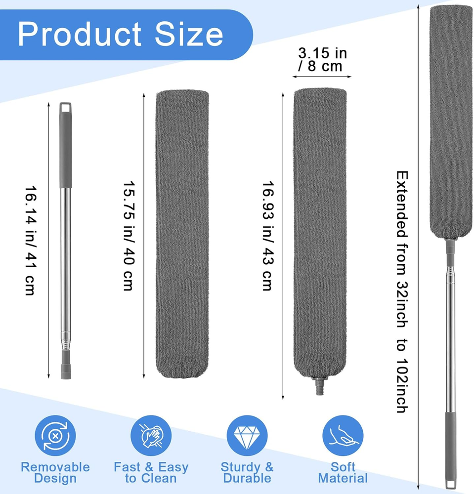 Ample for Dusting: if you buy our products, and you will be given 2 pieces of extension poles and 6 pieces of microfiber dust brush gap mops, useful and convenient for cleaning and dusting; The quantity of retractable microfiber dust gap mop is ample for long time use and replacement needs Retractable for Easy Use: the stainless steel long pole is stronger and will not rotate; The gap dust cleaner has a flexible flat head about 0.3 inches thick, 3 inches wide and 15.7 inches long, convenient for you to get into hard to reach places; Attached the pole to the gap duster, it can extend from 32 inches to 102 inches, capable of reaching further distances as well as between narrow spaces, no longer needing to step on a ladder or squat on the ground Reliable Quality: the extension poles are made of sturdy and lightweight stainless steel and PP material, allowing you to match with microfiber gap mop dusting brush, which can help perfectly solve the dust in the cracks; The gap mop adopts the principle of electrostatic vacuuming, easy dust removal, and can be washed repeatedly for reuse; The quality microfiber duster can remove large amounts of dust from under furniture Flexible to Bend and Disassemble: the long, flat flexible gap dusters for cleaning retractable are the ideal cleaning tools for difficult to reach places; The long, flat outline easily slides between and under kitchen appliances, washers, dryers and deep cabinets; They also flexible and bendable, so you can easily remove dust from any crevices Multiple Uses: the retractable gap dust cleaner washable is lightweight and sturdy, and can be applied wet or dry, very suitable for dust and build up under appliances and similar hard to reach spaces, ideal for kitchens, laundry, garages, bathrooms and so on; It can be applied as a thoughtful and warm gift for pet owners and allergy sufferers Features: The retractable dust gap cleaner microfiber can also be applied to clean floors, showers, tiles, toilets, carpets, upholstery, countertops, sinks, bathtubs, etc., providing you with a lot of convenience. Additionally, the under appliance microfiber duster can quickly trap dust, lint, bread crumbs, hair, dirt, so you can clean effortlessly. Specifications: Material: Extension poles: stainless steel and PP Gap mop: microfiber Color: gray Size: Flat head: about 0.3 inches thick, 3 inches wide and 15.7 inches long Package includes: 6 x Microfiber dust brush gap mops 2 x Extension poles Notes: Manual measurement, please allow slight errors on size. The color may exist a slight difference due to different screen displays.
