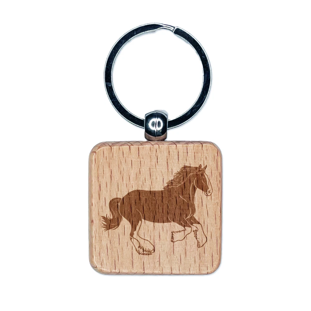 Mighty Clydesdale Horse Engraved Wood Square Keychain Tag Charm