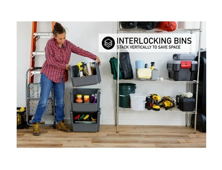 HomeMighty Tuff SB0161 Large Nesting Stack Storage Bin All Plastic Gray
