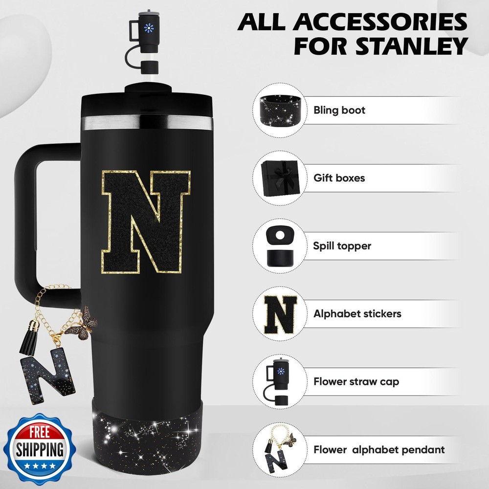 Miglaja Black Accessories for Stanley Cup Accessories 30OZ 40OZ, All Accessories Gift Box Contain Flower Straw Topper, Sillicone Boot, Letter Stickers and Pendants,Spill Stopper Set (Black N) Features [Gift Box]: We have designed an exquisite gift box for this set of accessories for stanley cup, which looks more noble and unique, and also adds infinite flavor to your gift-giving experience. Whether for your own use or as a gift to others, this well-designed packaging can show your taste and dedication, so that the recipient feels full of sincerity and respect [Upgraded safety material]: We have thickened the chain of the cup handle letter charm, it will not break. The stickers are made of natural towel embroidery, backed by adhesive reinforced non-marking adhesive, reusable. The straw lid, spill stopper set and boot are all made of thickened food-grade silicone to keep your water safe and make your stanley mug more durable and beautiful [Personalize your Tumbler cup]: the whole set of accessories is decorated with purple flowers to make your cup more exquisite and unique, especially the initials design allows you to decorate your favorite cup with your initials, your loved one's initials, or any other initials that have a special meaning [Protect for stanley mug]: Silicone straw cap can perfectly cover the straw, effectively prevent dust and keep the straw clean! The round and square spill plugs prevent the cup from leaking, and the silicone cup sleeve protects the bottom of the cup from wear and tear and impact deformation, as well as being non-slip and silent, perfect for stanley cup [Includes all accessories]:All the accessory set for stanley 20/30/40 OZ tumbler with handle , contain flower straw topper, sillicone boot, letter stickers and pendants,spill stopper set for tumbler with handle gift box Shipping Free & Fast Shipping: We offer free shipping to most of the USA with a normal delivery time of 3-7 days. However, due to the current situation, additional delivery time (up to 3 weeks) may be required for some items. Alternative Carriers: We may use alternative carriers (e.g., USPS, FedEx, UPS) to ensure your package arrives safely and on time. Due to the use of multiple carriers, we are unable to provide a tracking number automatically. Handling Time: Orders are processed and shipped within 1-2 business days of receiving cleared payment. Shipping Restrictions: Shipping to Alaska, Hawaii, Puerto Rico, Guam, and other US territories may incur shipping charges or delivery restrictions. Please contact us before ordering, or your order can be refunded/cancelled. State Restrictions: Certain items may not be shipped to California due to state regulations. Contact for Tracking Updates: If you require tracking updates or have any concerns about the delivery of your order, please feel free to contact us, and we will be happy to assist you. Return Policy 30-Day Hassle-Free Returns: If you are not completely satisfied with your purchase, you can return the item for free within 30 days of receiving it for a full refund or exchange. Easy Return Process: Contact us, and we will provide you with a prepaid return shipping label and detailed instructions. No Restocking Fee: There are no restocking fees for returns. However, the buyer is responsible for return shipping costs if the return is not due to a seller"s error. Refund Processing: Refunds will be processed within 1 business day of receiving the returned item in its original condition. Feedback Your feedback is extremely important to us. We strive to provide the best products and customer service possible. If you are satisfied with your purchase, please take a moment to leave us a positive review. If you have any concerns or issues with your order, please contact us before leaving negative feedback. We are committed to resolving any problems and ensuring your satisfaction. Contact Us If you have any questions or concerns, please feel free to reach out to our customer support team. You can contact us through the eBay messaging system. We are available Monday to Friday, 9:00 am to 5:00 pm EST, and we will do our best to respond to your inquiry within 24 hours. Thank you for supporting our small family business!