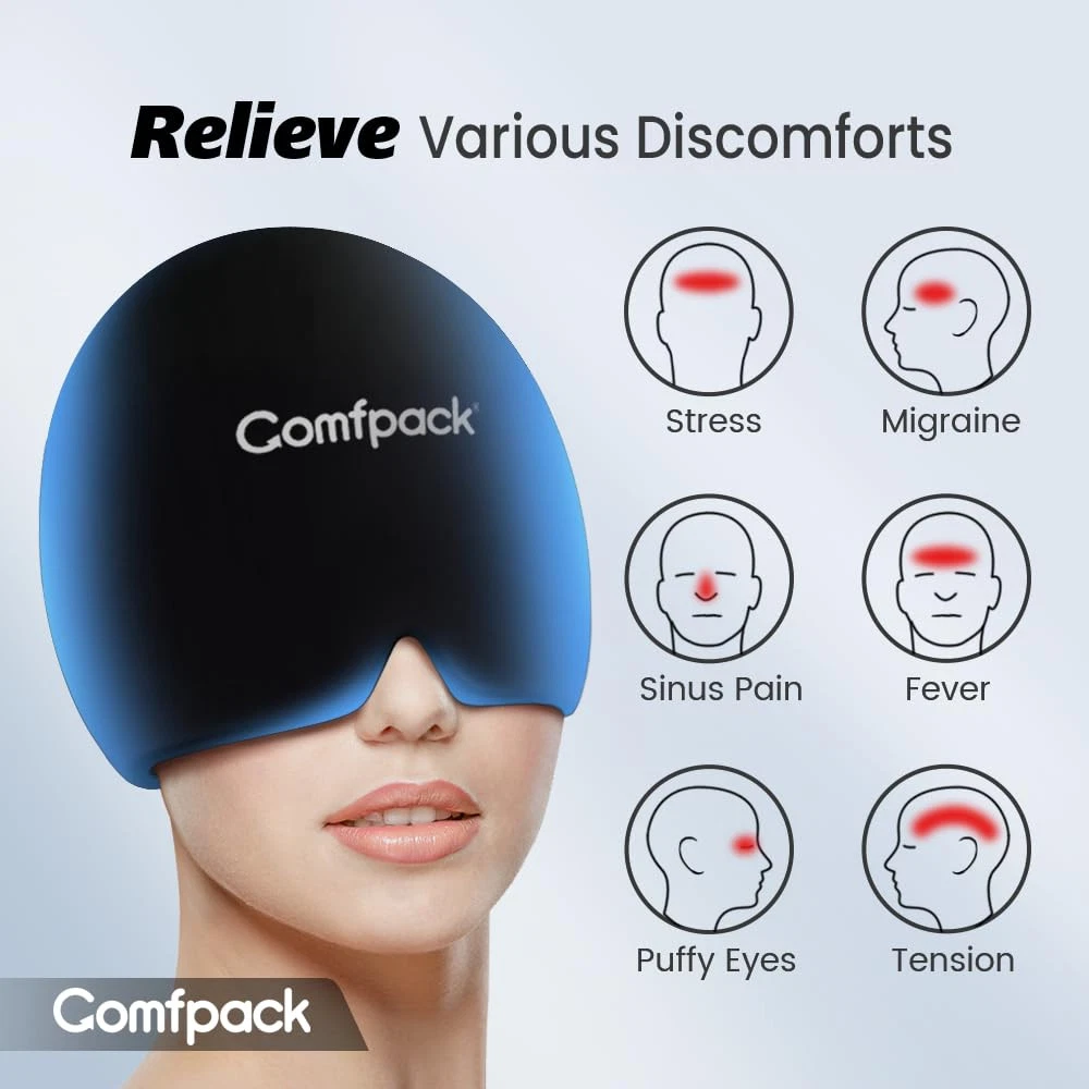 Designed for Migraine & Headache - The migraine ice cap works by coldness and compression to provide instant from chronic migraine, cluster headache, tension, sinus pain, . You can also pull it down as an eye to restrict the light stimulation and create a dark & peaceful space. 360° Full-Coverage - migraine ice cap provides 360° full head coverage, targeting multiple pressure points to alleviate headaches, migraines, and tension, offers a natural, non-invasive way to relieve headaches and migraines without . Flexible, Soft and Comfortable - Made with soft, stretchable fabric and skin-friendly , our ice hat remains flexible even after several hours or days of freezing, contours around your head perfectly, and provide adequate pain-relieving compression at the same time. Universal Fit & Convenient - Made of stretchable material with strong elasticity, migraine ice hat fits most head sizes (head circumference is about 20-24 inches) without feeling too tight or too loose. The wearable slip-on design avoids messy wraps, inserts or awkward bands, you could wear it in seconds with ease. Trustworthy Quality - Made with cutting-edge material and expert-, ice cap is totally safe and resists tearing and leaking, ensures a long , and without any unpleasant smell. A must have headache tips for daily life. 's Promise - Come with sealable storage PE bag to prolong the usage and isolate the fridge odor. If you are not satisfied with the product, please come to us, we will immediately solve all your questions. Note: Apply for no more than 20 minutes at a time. Check the skin frequently during use.