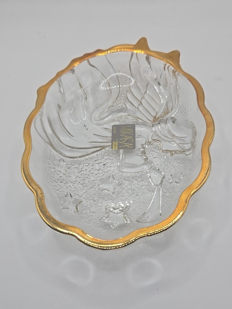 Mikasa Crystal Glass Angel Gold Trim Small Candy Dish Holiday Christmas