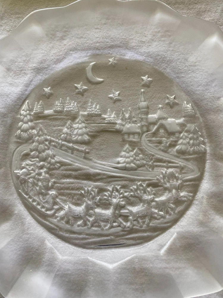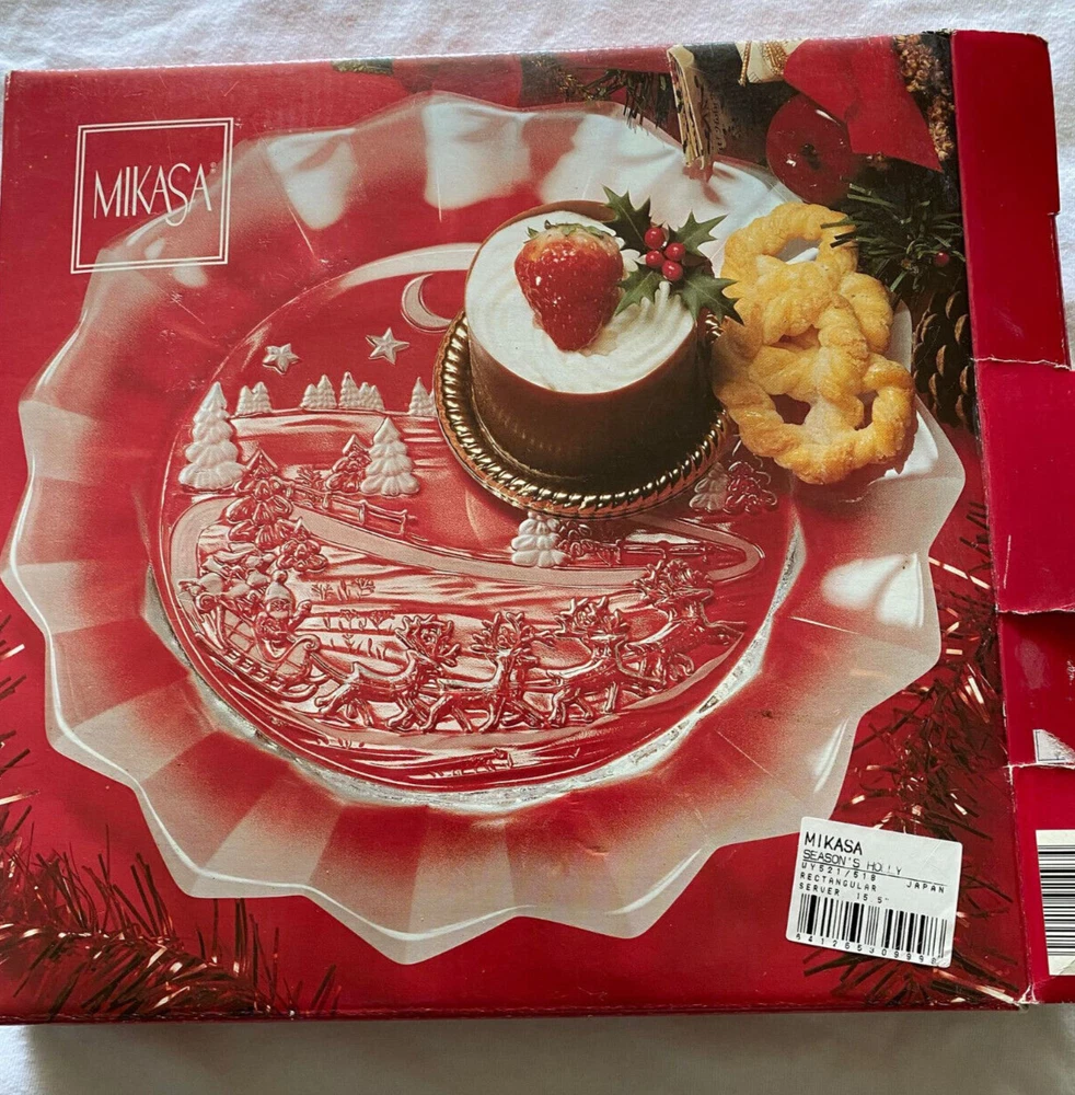 Add a touch of festive charm to your holiday table with this Mikasa Frosted Crystal Plate Platter. Featuring a round shape and a clear crystal material, this large platter is perfect for showcasing your Christmas decor. The intricate design showcases a Santa sleigh with reindeer, making it a perfect addition to your holiday collection. Crafted in Japan, this contemporary style platter is part of the Seasons collection and is perfect for adults. The frosted finish adds a unique touch to the platter, making it a great conversation starter. Whether you're using it to serve your favorite holiday meal or as a decorative piece, this Mikasa platter is sure to impress.