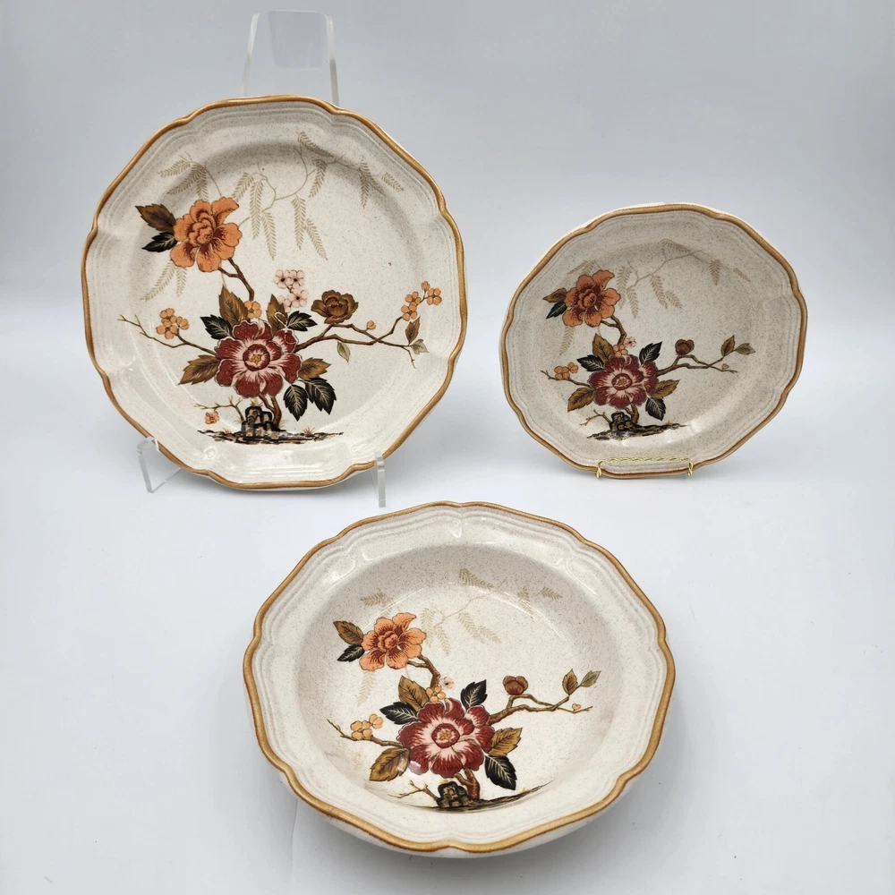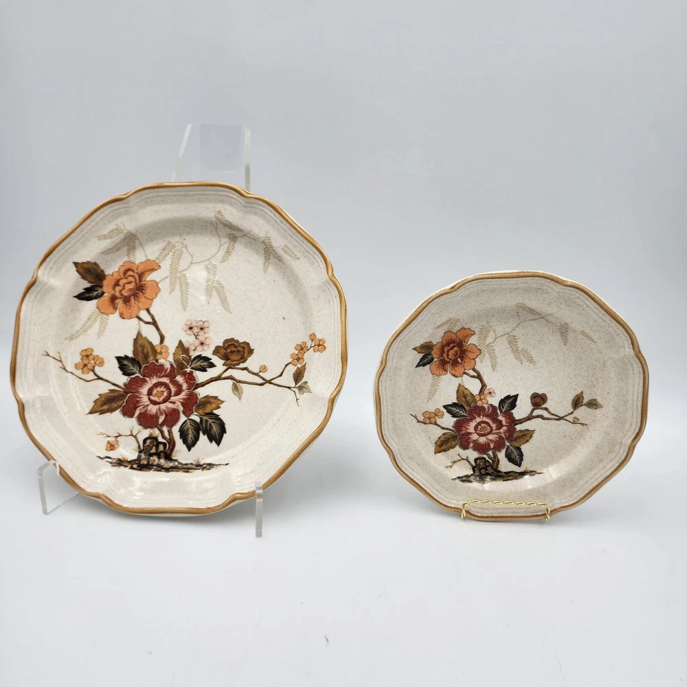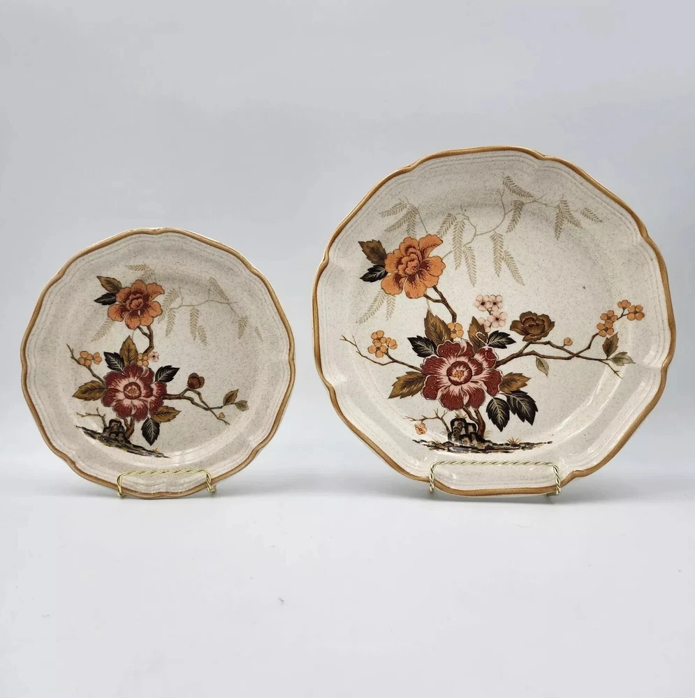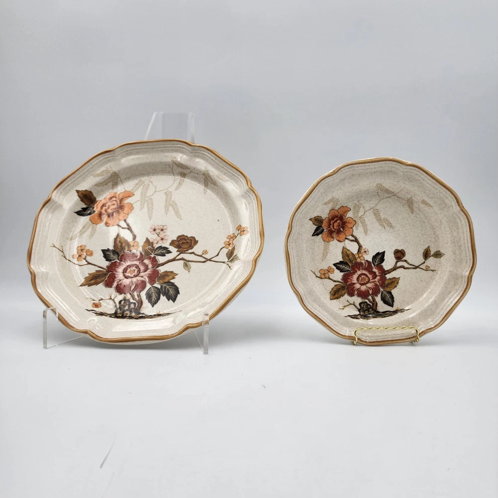 These classic Mikasa Imperrial Garden Club EC 459 Stoneware salad plates are the perfect table setting for a vintage mid-century decor. Made in Japan, each plate in the set of 7 measures 8" diameter. They are dishwasher and microwave safe. The color pallete is natural and, therefore, fits most color schemes.