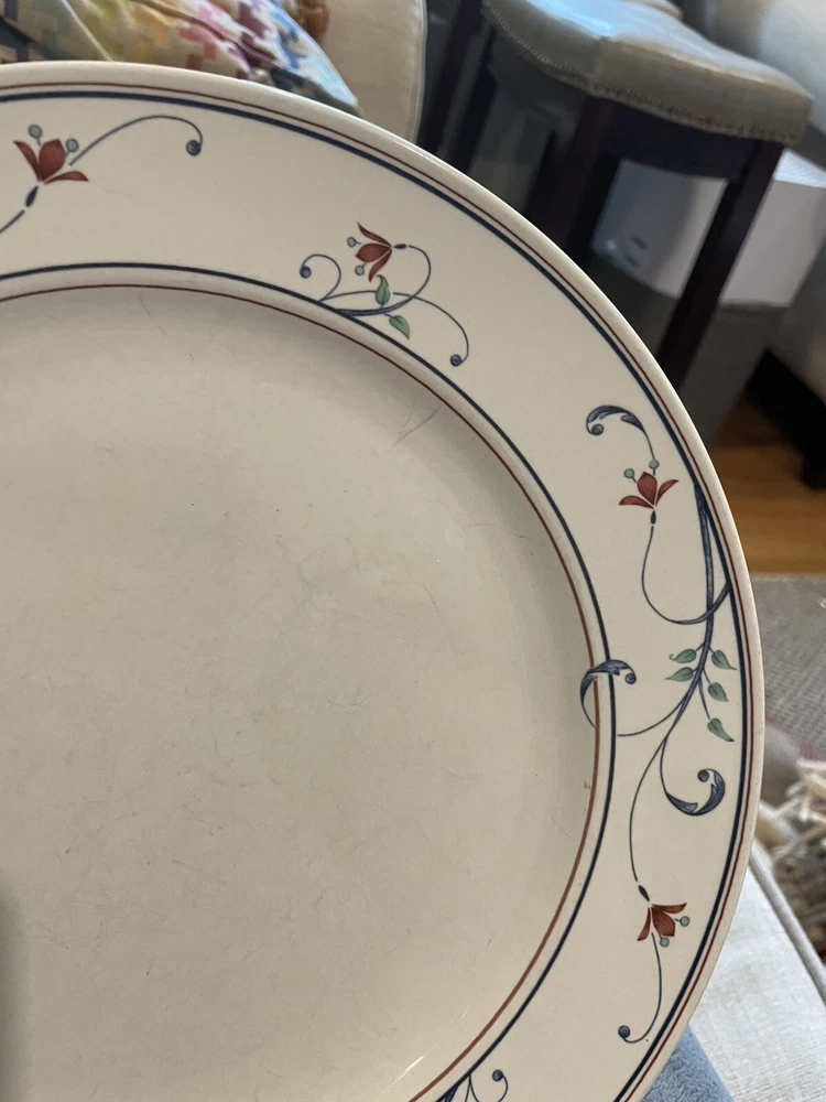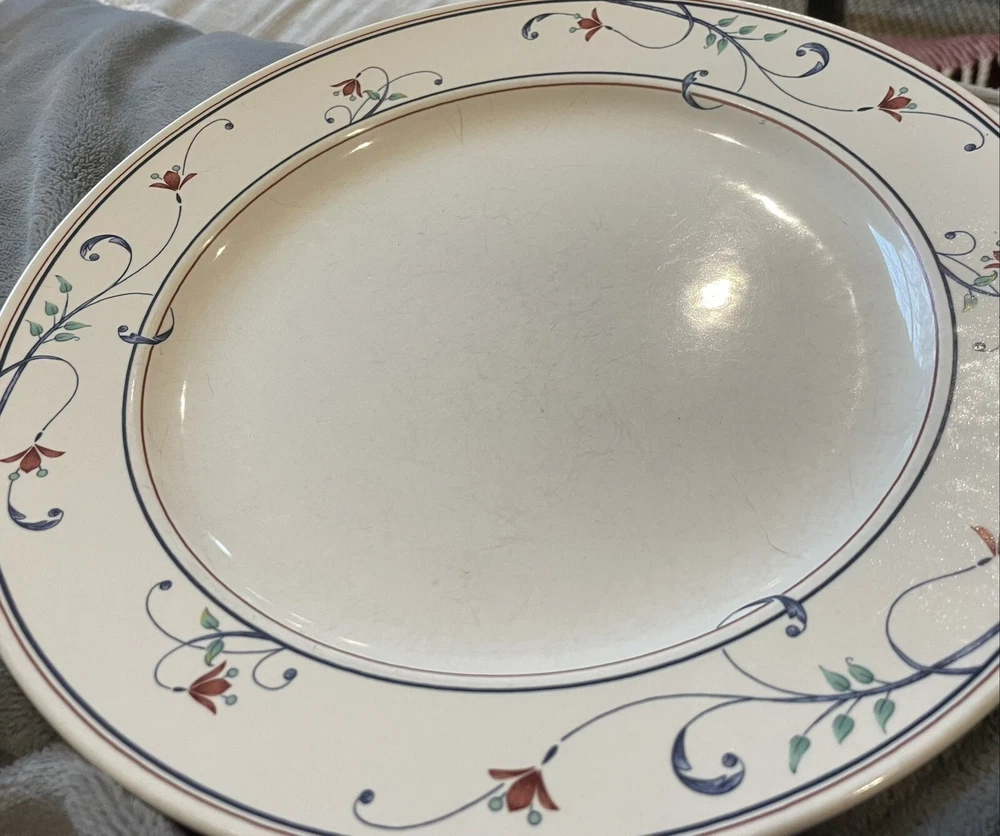 This elegant Mikasa Intaglio Annette dinner plate is 11”. It has some wear marks, so please see photos before purchasing. It is a lovely addition to your setting.