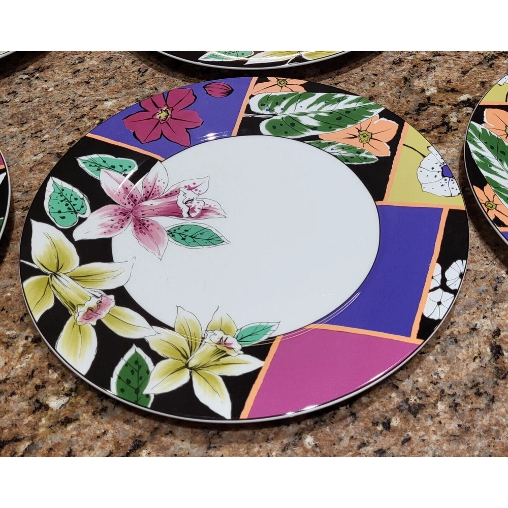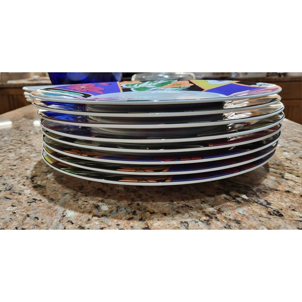 Enhance your dining experience with this exquisite set of 8 Mikasa Maxima Amorosa Fine China 12" Chop Plates. The round plate features a beautiful multicolor floral theme, perfect for all occasions. Made of high-quality porcelain, these plates are not only stylish but also durable. The set includes eight Chop Plates 12", which are perfect for serving full meals, appetizers or desserts. The plates are dishwasher safe, oven safe, microwave safe, freezer safe, and chip-resistant. These contemporary style plates are printed with the Maxima product line backstamp and made in Japan. Add this beautiful set of plates to your collection and impress your guests with your elegant dining style. Excellent pre-owned condition! No chips or cracks! One plate has a couple of minor scratches on it as shown in the pictures. Ready for your next gathering! These are extremely heavy plates therefore the cheapest method of shipping has been selected. Should you need priority please contact me so we can make that happen for you.