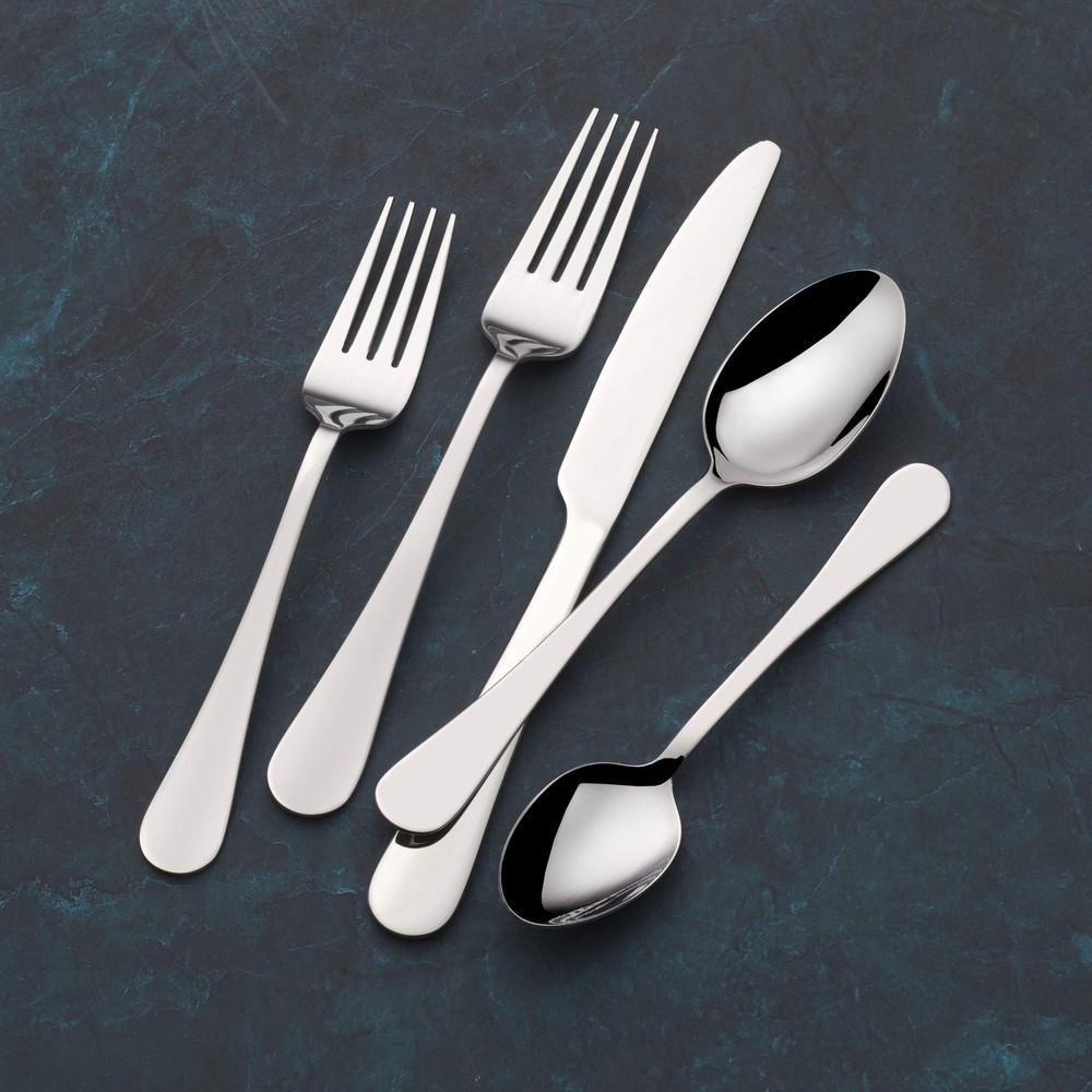 This Basics 42-Piece Symmetry Flatware Set by Mikasa features lasting brilliance, incredible shine, and teardrop handles with a stunning mirror finish. The understated elegance makes this an ideal set for both casual or formal dining, and it complements any dinnerware or stemware. Constructed of 18/0 stainless steel, this set will stand up to the rigors of everyday use and never needs polishing. 42-piece set, service for 8, includes 8 each: dinner fork, salad fork, dinner knife, dinner spoon, and teaspoon, plus serving spoon and serving fork. Dishwasher safe. UNDERSTATED ELEGANCE: Symmetry flatware features lasting brilliance, incredible shine, and teardrop handles with a stunning mirror finish VERSATILE: the timeless, sophisticated style is ideal for both casual or formal dining, and the set complements any dinnerware or stemware STRONG & DURABLE: made of superior quality 18/0 stainless steel to stand up to the rigors of everyday use 20-PIECE SET: includes 4 each of dinner fork, salad fork, dinner knife, dinner spoon, and teaspoon EASY CARE: dishwasher safe for quick, thorough cleaning and never need polishing