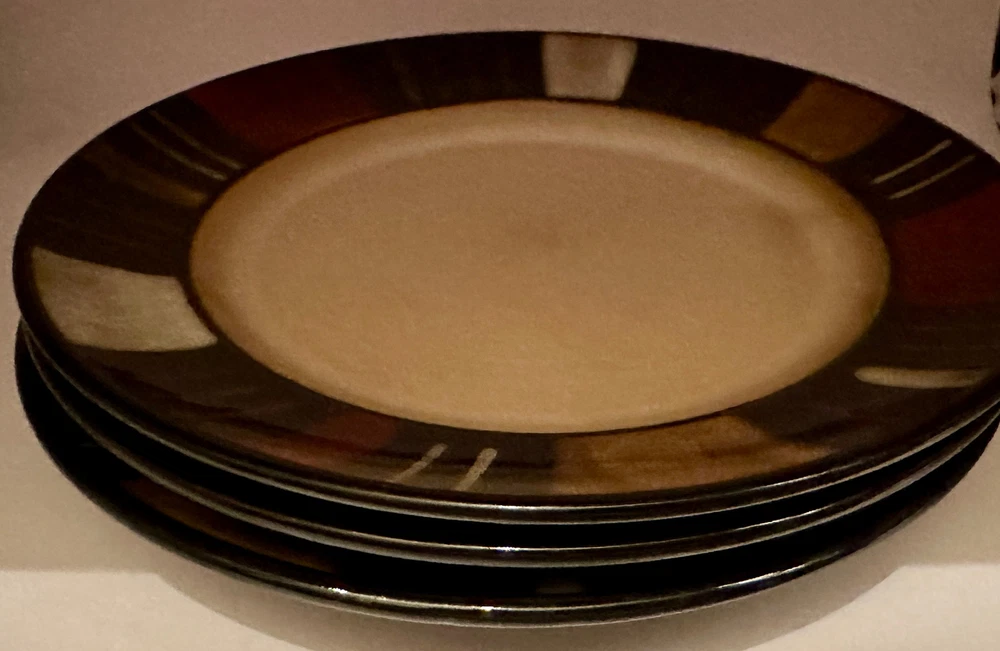 Mikasa Waverly Salad Plates (4) 8-3/4" Brown beige Tones Picture shows 3...you will get 4 Excellent Condition Fair Safe Shipping