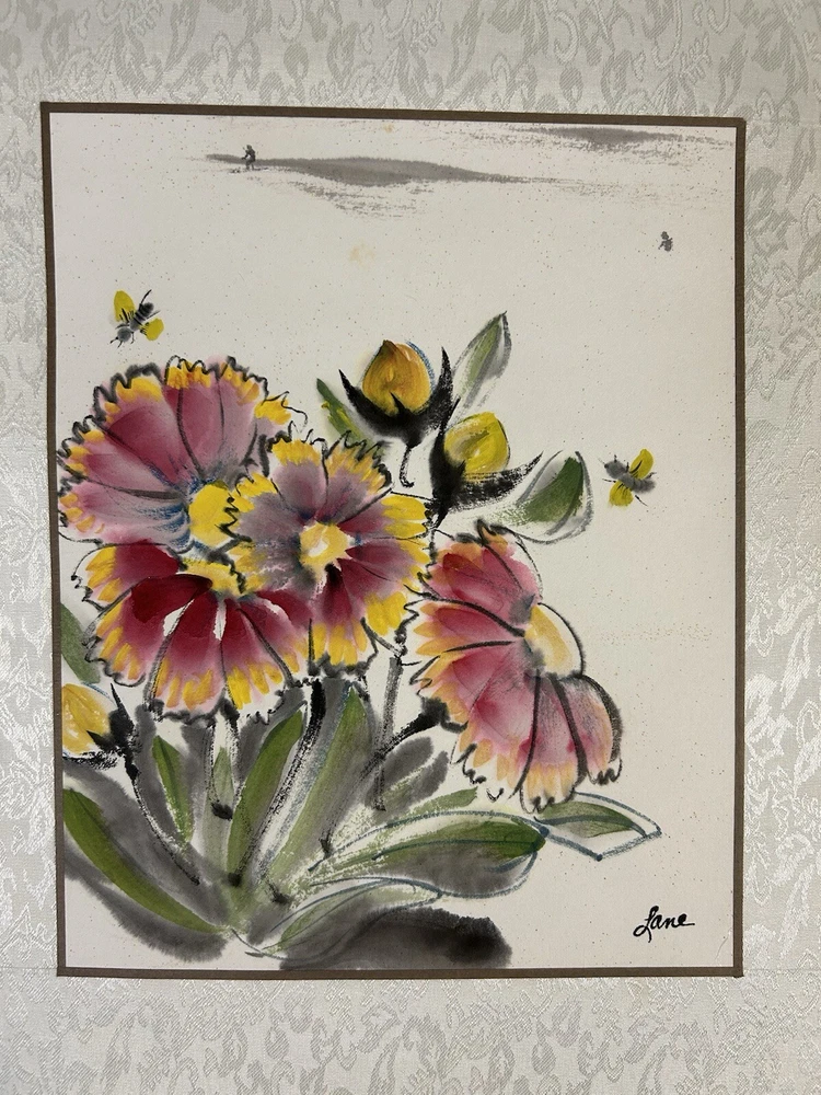 Custom Painting - Chinese Brushwork Flowers. Condition is Used. Shipped with USPS Ground Advantage.