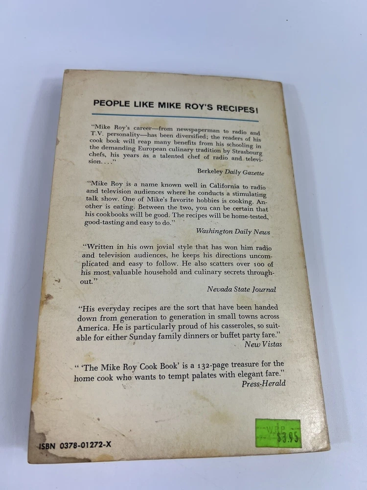 Features:PBEx Libris:NoLanguage:EnglishPersonalized:NoPublication Year:1974Original Language:EnglishEra:1970sPersonalize:NoCountry/Region of Manufacture:United Statesgtin13:NAEdition:1974Narrative Type:NonfictionAuthor:Mike RoyVintage:NoBook Title:The Mike Roy Cook Book VInscribed:NoPublisher:Ward Ritchie PressNumber of Pages:144Signed:NoGenre:CookbooksTopic:FoodAge Level:AdultsIntended Audience:AdultsFormat:PaperbackType:CookbookBook Series:Mike RoyISBN:NA