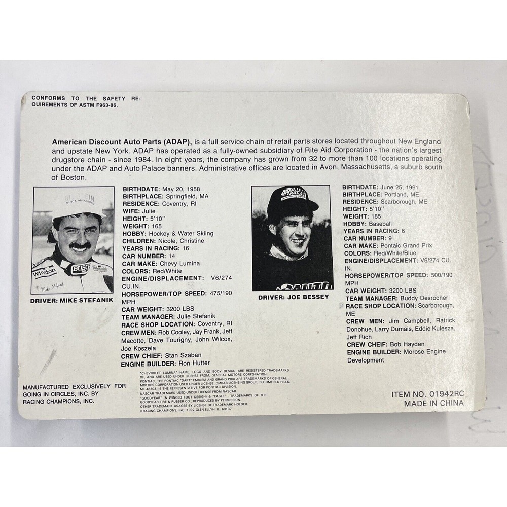 Race series: Daytona Autographed: No Brand: Racing Champions gtin13: Does not apply Character Family: Auto Palace Theme: Auto Palace Organization: NASCAR Features: Advertising Specimen, Unopened Box, Limited Edition Age Level: 3-4 Years, 4-7, 8-11 Years Material: Diecast Vehicle Type: NASCAR Racecar Racing Team: Auto Palace Country/Region of Manufacture: China Driver: Mike Stefanik Recommended Age Range: 3+ Color: Multi-Color Vehicle Make: Chevrolet UPC: Does not apply Series: Racing Champions Vehicle Year: 1991 Scale: 1:64 Model: Pontiac Grand Prix