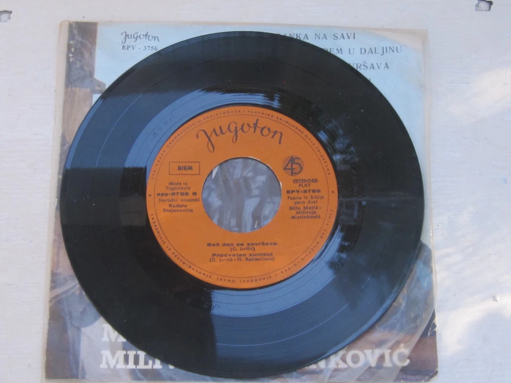 Mila Matić and Milivoje Mićanović - Ciganka na Savi / Kad ja pođem u daljinu Selling a well-preserved vinyl record by the renowned artists Mila Matić and Milivoje Mićanović. This record features unforgettable songs “Ciganka na Savi” and “Kad ja pođem u daljinu beli dan se završava procvetao zumbul,” which capture the authentic sound and emotions of past times. The record is in excellent condition, with the original sleeve and protective cover. Ideal for collectors and music lovers of past decades. Details: Artists: Mila Matić and Milivoje Mićanović Album Title: Ciganka na Savi / Kad ja pođem u daljinu Condition: The original that survived the war. Producer: Jugoton Don’t miss the opportunity to enrich your collection with this rare edition!