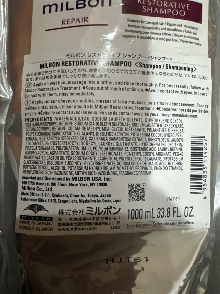 Milbon Restorative Shampoo (Repair Series) Milbon Restorative Shampoo is a premium repairing shampoo designed specifically for damaged hair, particularly for those that have undergone frequent coloring, perming, or heat styling. Infused with hydrolyzed keratin and hydrolyzed silk protein, this formula penetrates deep into the hair shaft to repair structural damage, strengthen strands, and restore a healthy shine. Enriched with glycerin, arginine, and hydrogenated lecithin, it effectively nourishes the scalp, prevents dryness, and tames frizz, leaving hair smooth, manageable, and easy to comb. The mild amino acid-based cleansing system gently removes excess oil and impurities while maintaining the hair’s natural moisture balance. This shampoo features a sophisticated floral-fruity-woody fragrance, reminiscent of a luxurious salon experience. The scent lingers subtly, offering a long-lasting yet refreshing aroma. Designed for those who seek professional-level repair and nourishment, Milbon Restorative Shampoo helps bring hair back to life, leaving it silky, strong, and full of vitality.