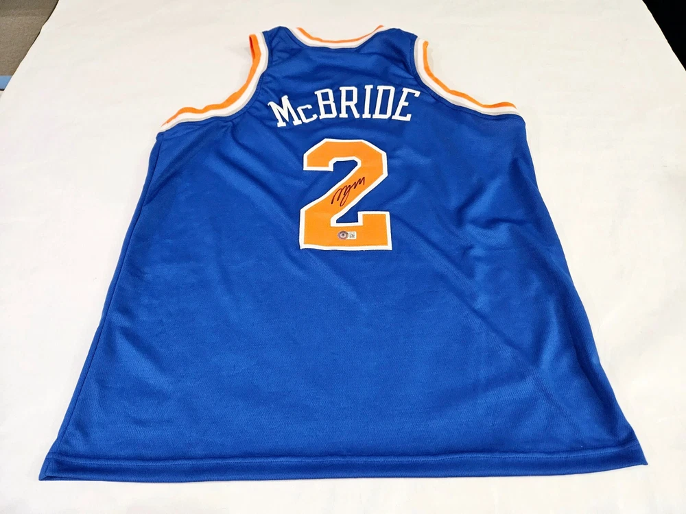 Miles McBride New York Knicks Autographed Custom Jersey. Beckett Certification. Size Adult XL Note All Items Have A Certification of Authenticity Sticker On Them. These Certification Stickers Will Be From Beckett, JSA, PSA , RSA or OKAUTHENTICS. Some Items Will Come With A Matching Letter of Authencity. While Others May Not. Please Refer To Images Taken To See If Your Item Comes With A Matching Letter Of Authenticity. $5 USPS Shipping Combined shipping on all items won within 3 days. Each additional jersey won will only be $3 extra shipping