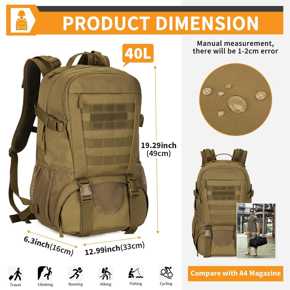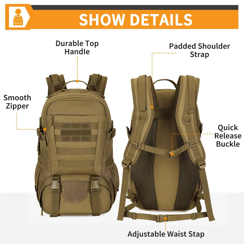 Military Backpack Hunting Rucksack Gear Tactical Backpack (Brown) Convenient for shopping, hiking, mountaineering, Outdoor travel, field exploration, WARGAME, military enthusiasts collection and so on Shipping We offer FREE shipping on all orders! We ship within Three business days of payment, usually sooner. We use a selection of shipping services such as UPS, FedEx, USPS etc. We only ship to the lower 48 states, no APO/FPO addresses or PO Boxes allowed. Local pickups and combined shipping options are not provided at this time. Return You can return a product for up to 30 days from the date you purchased it. Any product you return must be in the same condition you received it and in the original packaging. Please keep the receipt. Payment We accept payment by any of the following methods: PayPal Please pay as soon as possible after winning an auction, as that will allow us to post your item to you sooner! Feedback Customer satisfaction is very important to us. If you have any problem with your order, please contact us and we will do our best to make you satisfied. Contact Us If you have any queries, please contact us via ebay. We usually respond within 24 hours on weekdays. Please visit our eBay store to check out other items for sale! Thank you for shopping at our store.