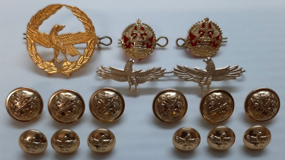 Military Insignia Badges and Buttons British Made 17 Piece Set For Collectors Each set contains: 1 X hat badge 2 X shoulder badges 2 x collar badges 6 X buttons 19mm (approx) 6 X buttons 14mm (approx) Great also for customization, fancy dress costumes or collectors. Insignia: Assorted as in the pictures Condition: New All photos are stock photos colour shade may differ due to lighting Thanks for looking.