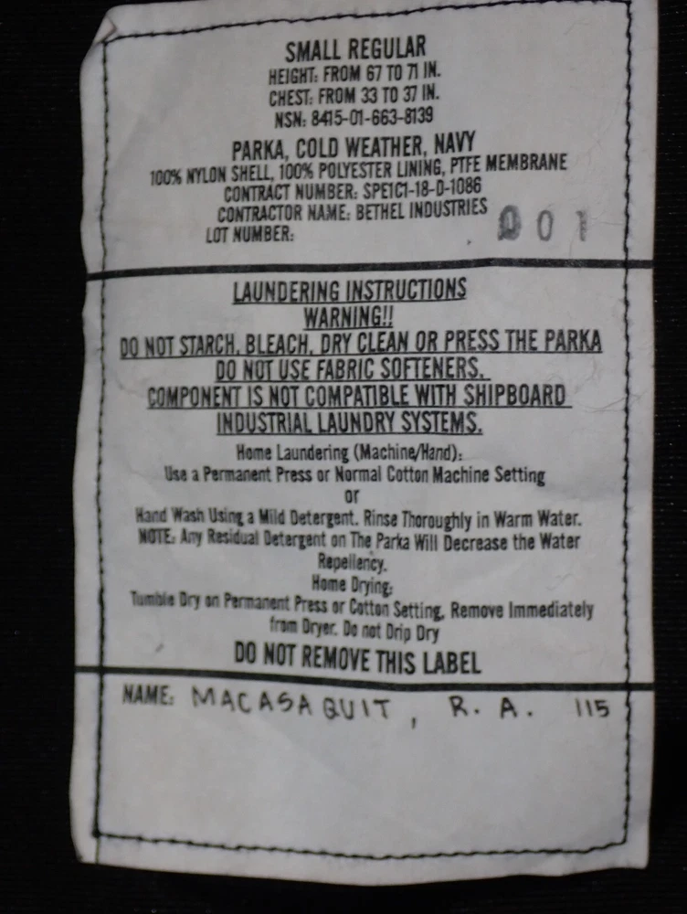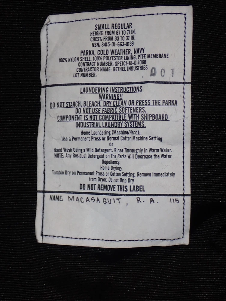 Military Jacket Mens SMALL REGULAR Black Parka Cold Weather Navy USN Gore-tex Rain In perfect working condition I provide high quality and accurate photos so that you can see the items you are buying. Items shown in the photo are always the ones that will be shipped What's Included? If it's not in the pictures, it's probably not included. Please don’t request for free shipping Shipping is not included in the price As with any surplus, we recommend washing before wearing. We ship quickly utilizing USPS Priority mail boxes and we always combine shipments A picture is worth a thousand words There might be slight color difference between the picture and the real one because of the difference of environment light color and settings of your computer screen color & brightness. Shipping next day Priority Mail 14 days return after receive Cosmetically as pictured. What you see is what you get I can ship this item via UPS Ground, or USPS Priority Mail. Please click on the Shipping tab to see the rates and select the one that best suits your needs. We will combine shipping so wait for invoice if you are bidding on multiple items BEFORE YOU LEAVE FEEDBACK PLEASE , so we can work something out. Local pickup is welcome and free Will ship WORLDWIDE UNPAID ITEM CASES ARE AUTOMATICALLY OPENED BY EBAY WHEN PAYMENTS ARE NOT RECEIVED BY THE 4th day. Please be aware that mail from Hawaii takes few days longer, thank you.) BUYER IS RESPONSIBLE FOR ALL CUSTOMS FEES AND ANY OTHER CHARGES ON INTERNATIONAL SHIPPING. . WE WILL SHIP TO CONFIRMED PAYPAL ADDRESS ONLY !!!! Track Page Views With Auctiva's Counter