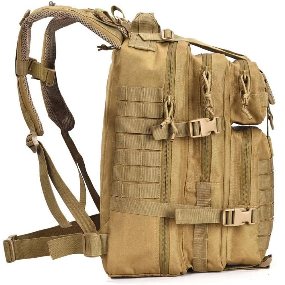 Description Desc.: Military Tactical Assault Pack Backpack Small Army Bag Backpacks Rucksack for Outdoor Hiking Camping Hunting The molle tactical backpack has molle system, But MOLLE is a little different as most tactical bacpkacks and is not to spec. Spacing between of molle is less than 1/2" Tactical assualt backpack size approx.:11"*18"*12" / 28*45.5*30CM (W*H*D),Capacity: 34L, it's not big backpack; Military backpack is made of 600x600 Density fabric, durable and water-resistant The assault pack with double-stitched, Heavy duty zippers and utility-style cord pulls, Side and front load compression system, Comfortable padding back area, Ventilated mesh padding shoulder strap. Military backpack has hydration compatible that works great for a 2.5L hydration bladder Notice: backpack didn't include hydration bladder This tactical assault pack backpack can be used as 3 day assault pack backpack, combat backpack, range bag, hunting backpack, survival backpack, rucksack military army backpack or trekking backpack. Tactical assualt backpack Capacity: 34L. Size approx.:11"*18"*12" / 28*45.5*30CM (W*H*D), it's small backpack; Military backpack is made of high density fabric-durable and water-resistant. The assault pack with double-stitched, Heavy duty zippers and utility-style cord pulls, Side and front load compression system, Comfortable padding back area, Ventilated mesh padding shoulder strap. Military backpack has hydration compatible that works great for 2.5L hydration bladder (backpack didn't include hydration bladder) as hydration back pack or outdoor camping hiking backpack backpack. This tactical assault backpack can be used as 3 day assault back pack backpack, combat backpack, range bag, hunting backpack, survival backpack, military army backpack rucksack or trekking backpack. The molle tactical backpack has molle system, MOLLE is a little different as most tactical bacpkacks and is not to spec. Spacing between of molle is less than 1/2".