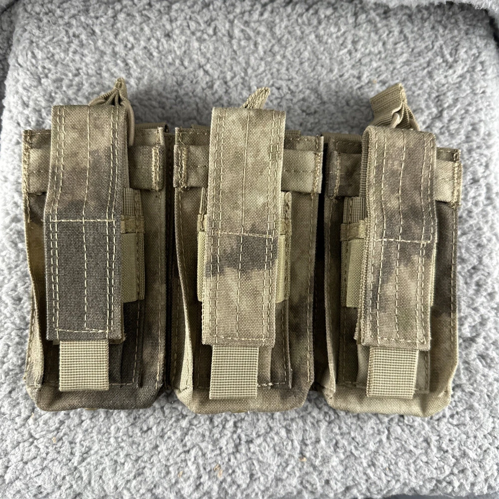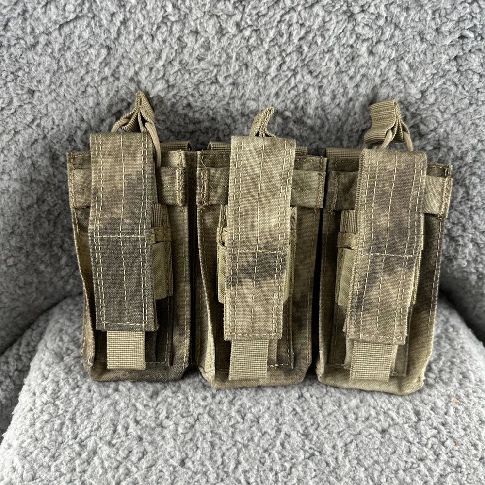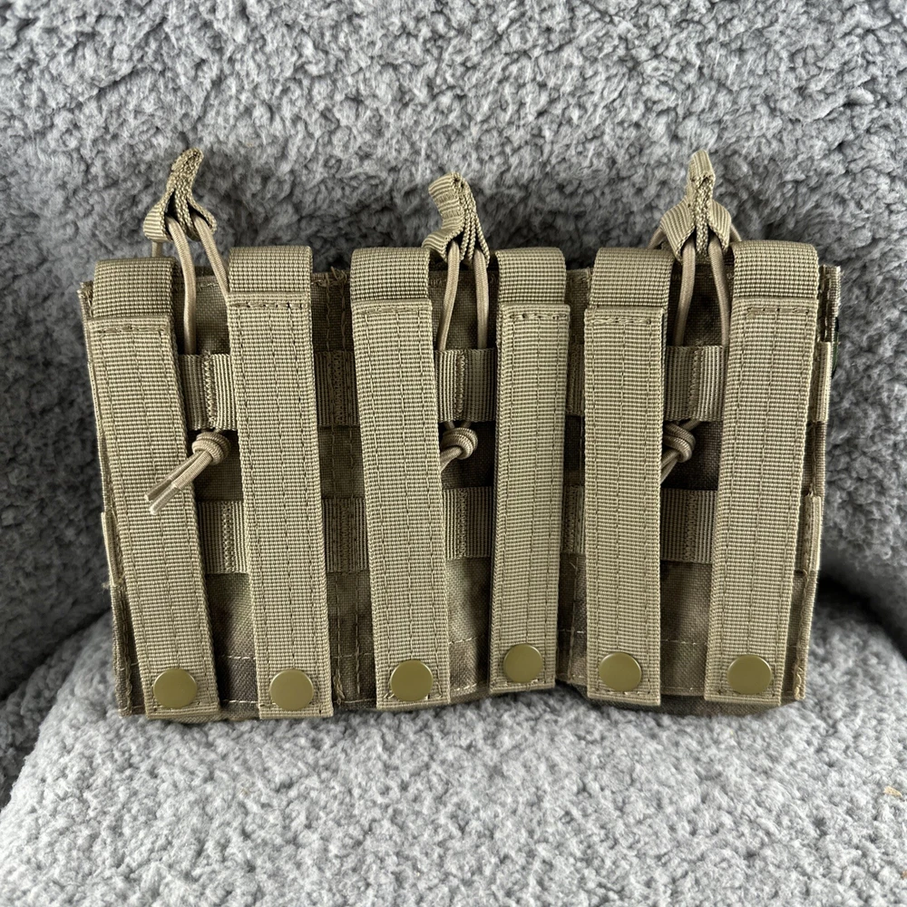 Embrace the essence of utility and organization with the Military Tactical Triple Rifle/Pistol Magazine Pouch. Designed for the discerning hunter and tactical enthusiast, this robust pouch features a MOLLE-compatible system, ensuring seamless integration with your existing gear. Constructed from durable nylon, the pouch is adorned in a striking multicolor pattern, providing a professional yet discreet look. The Military Gear Triple Magazine Pouch offers ample storage for six 5.56 .223 magazines and three pistol magazines, ensuring you stay prepared for any situation. With a practical hook & loop closure and six distinct compartments, managing your ammunition has never been easier. The pouch's dimensions, a generous 10" in length, 7" in height, and 1" in depth, make it an ideal accessory for your hunting or tactical adventures.
